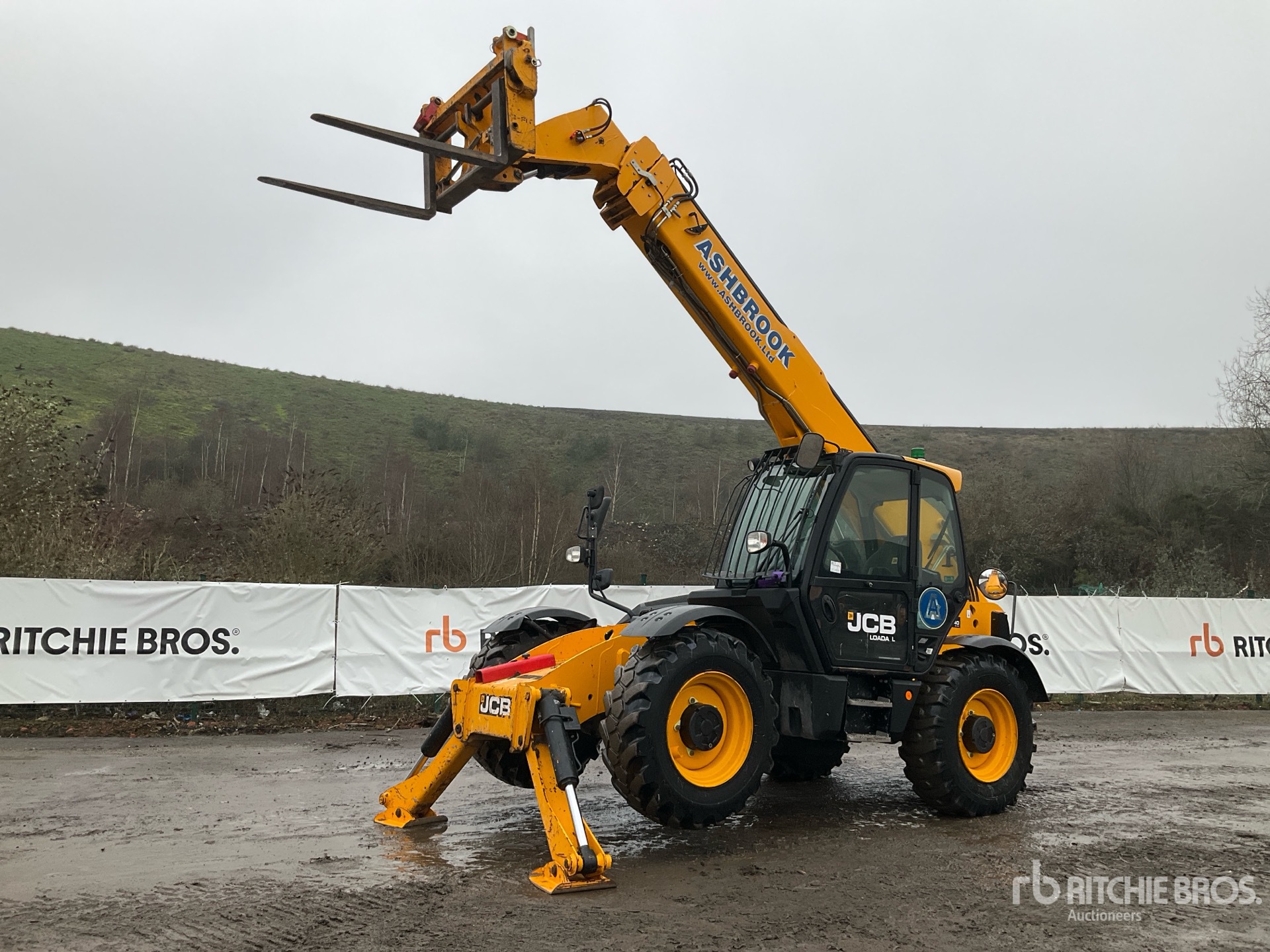 Enclosed Cab, Rear View Camera, Load Moment Indicator, 13.78 m Max Lift Height, 4000 kg Max Lift Capacity, 1190 mm Forks, Manual Coupler, Outriggers, Auxiliary Hydraulic Plumbing, 15.5-25 Tires