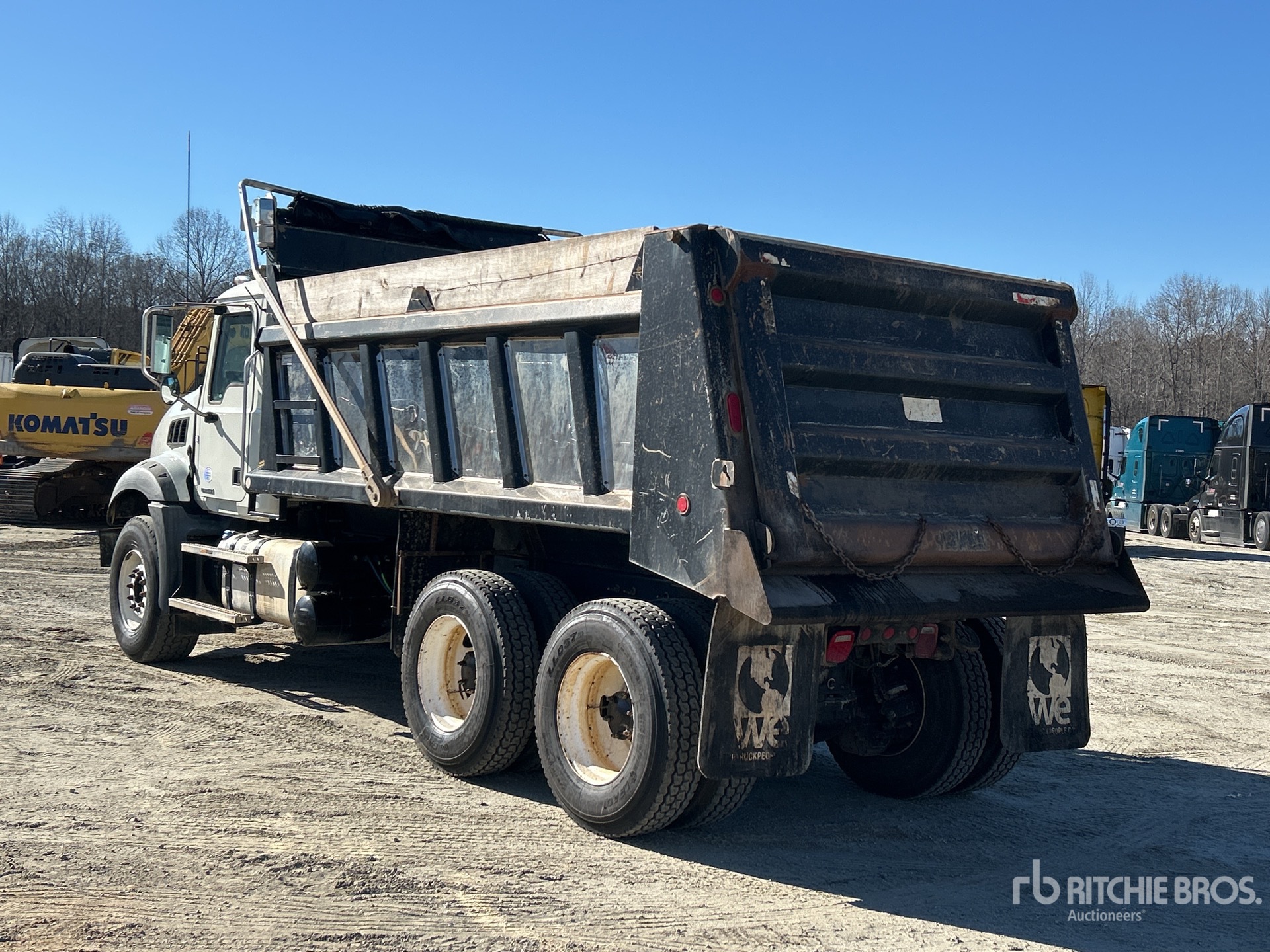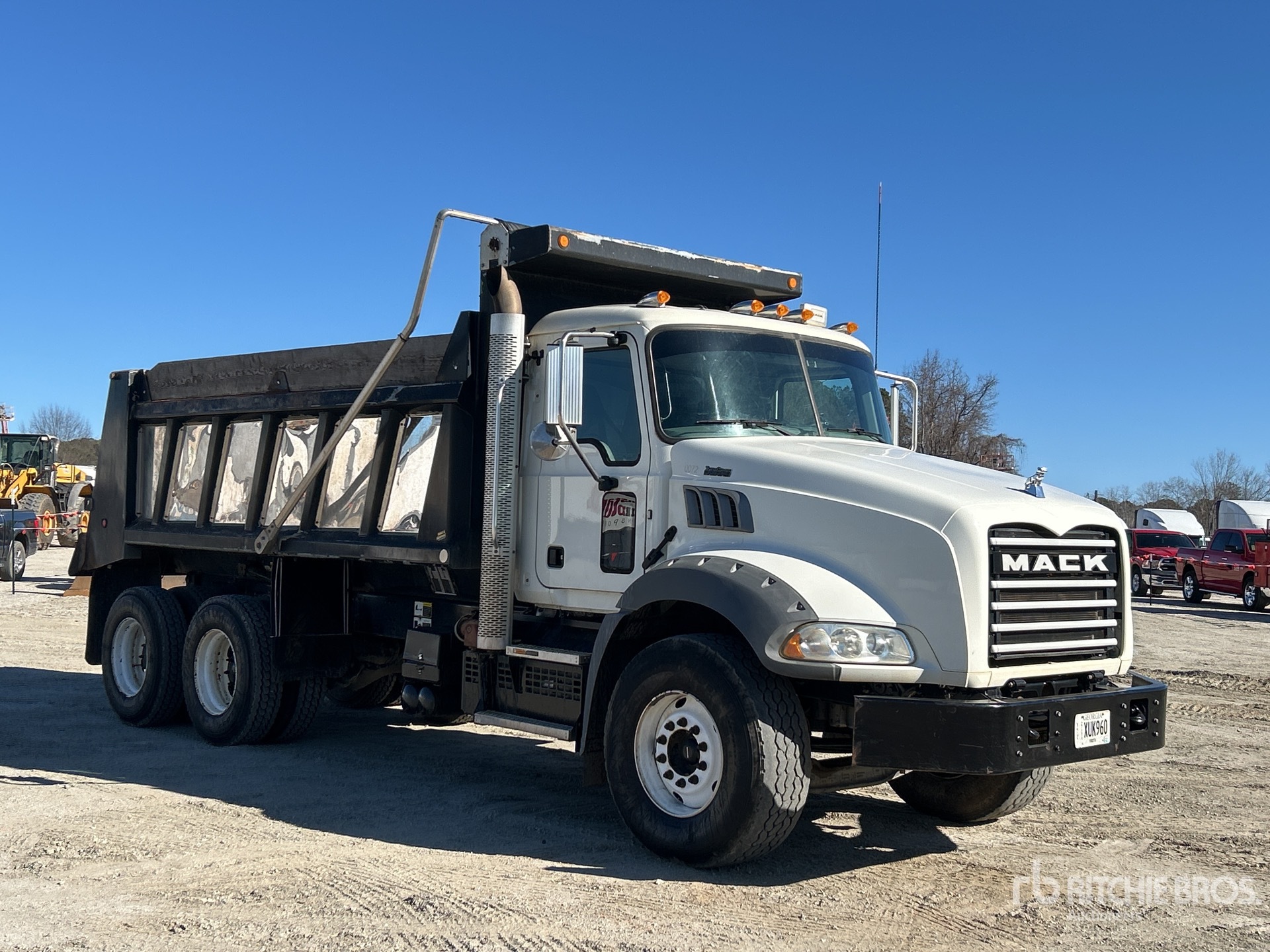 Mack MP7 10.8 L Diesel 395 hp Engine, 2018 US EPA Label, Requires Diesel Exhaust Fluid, 10954.3 Engine hrs, Exhaust Brake, Allison Automatic Transmission, 20000 lb Front Axle, 46000 lb Rears, MACK Drive Axles, 66000 lb GVWR, Air Ride Cab, 425/65R22.5 Front Tires, 11R22.5 Rear Tires, Double Frame, Camelback Spring Suspension, 206 in Wheelbase, Duraclass 16 ft Long x 4 ft 4 in High Steel Body, Electric Roll Tarp