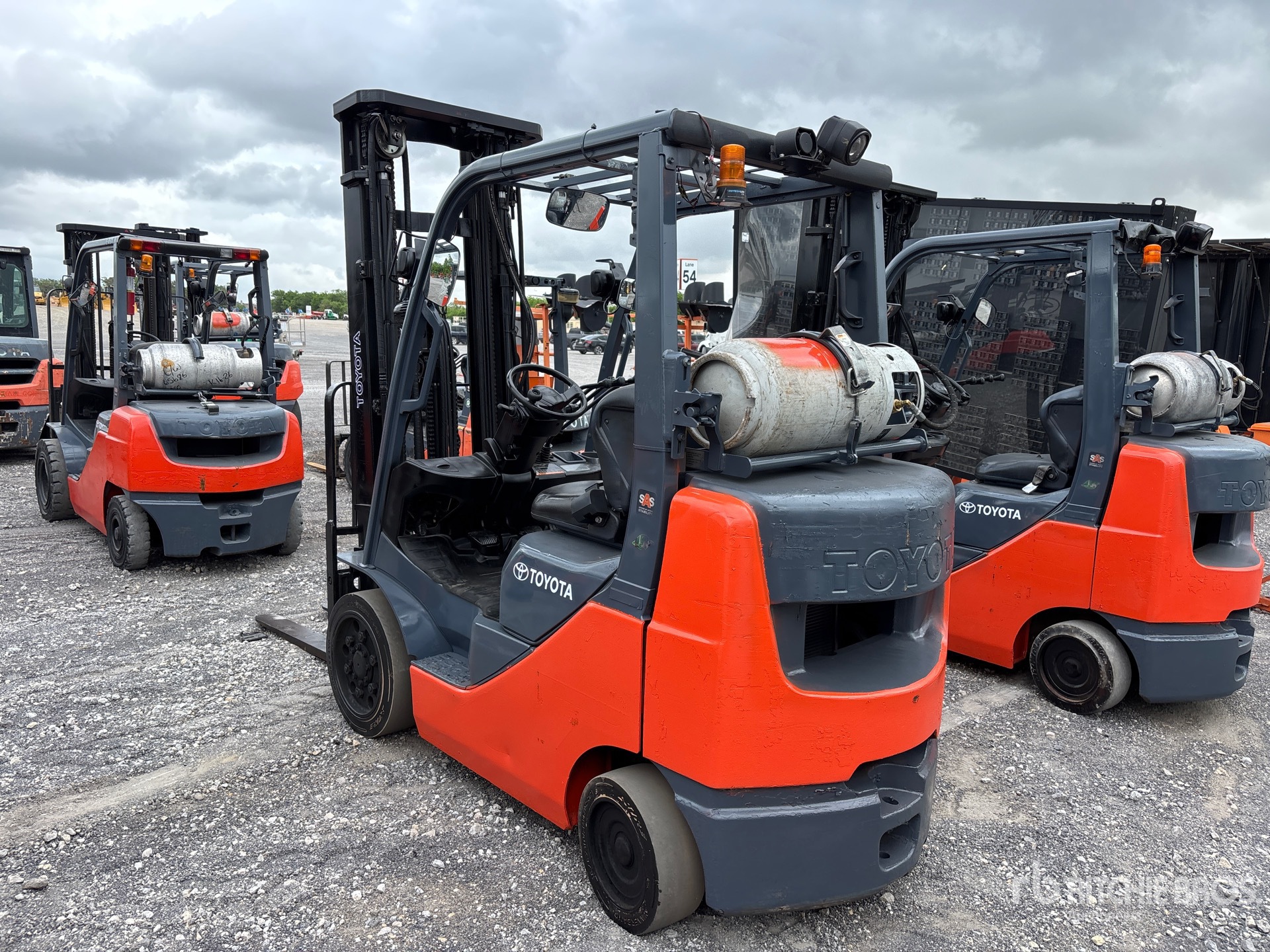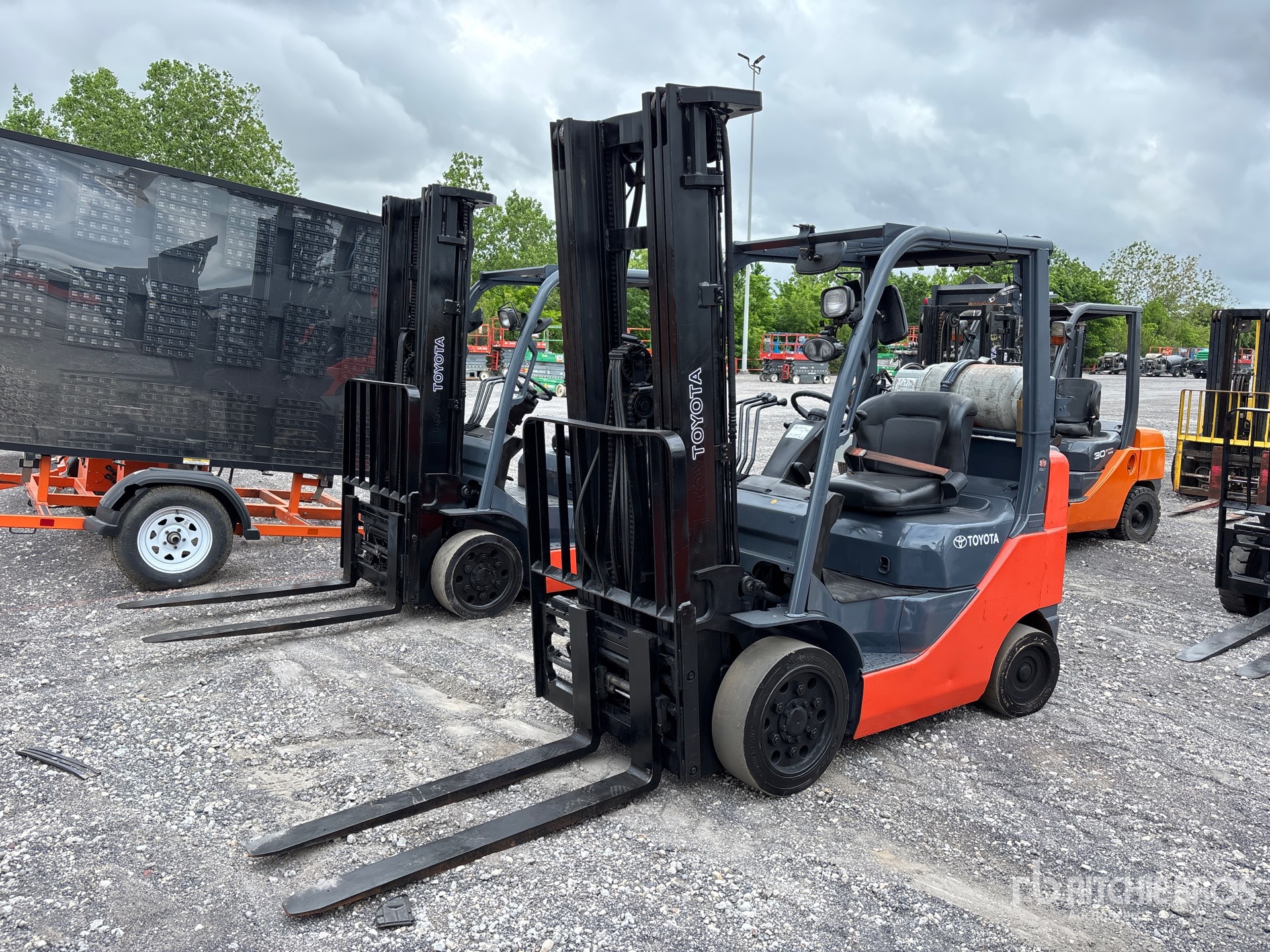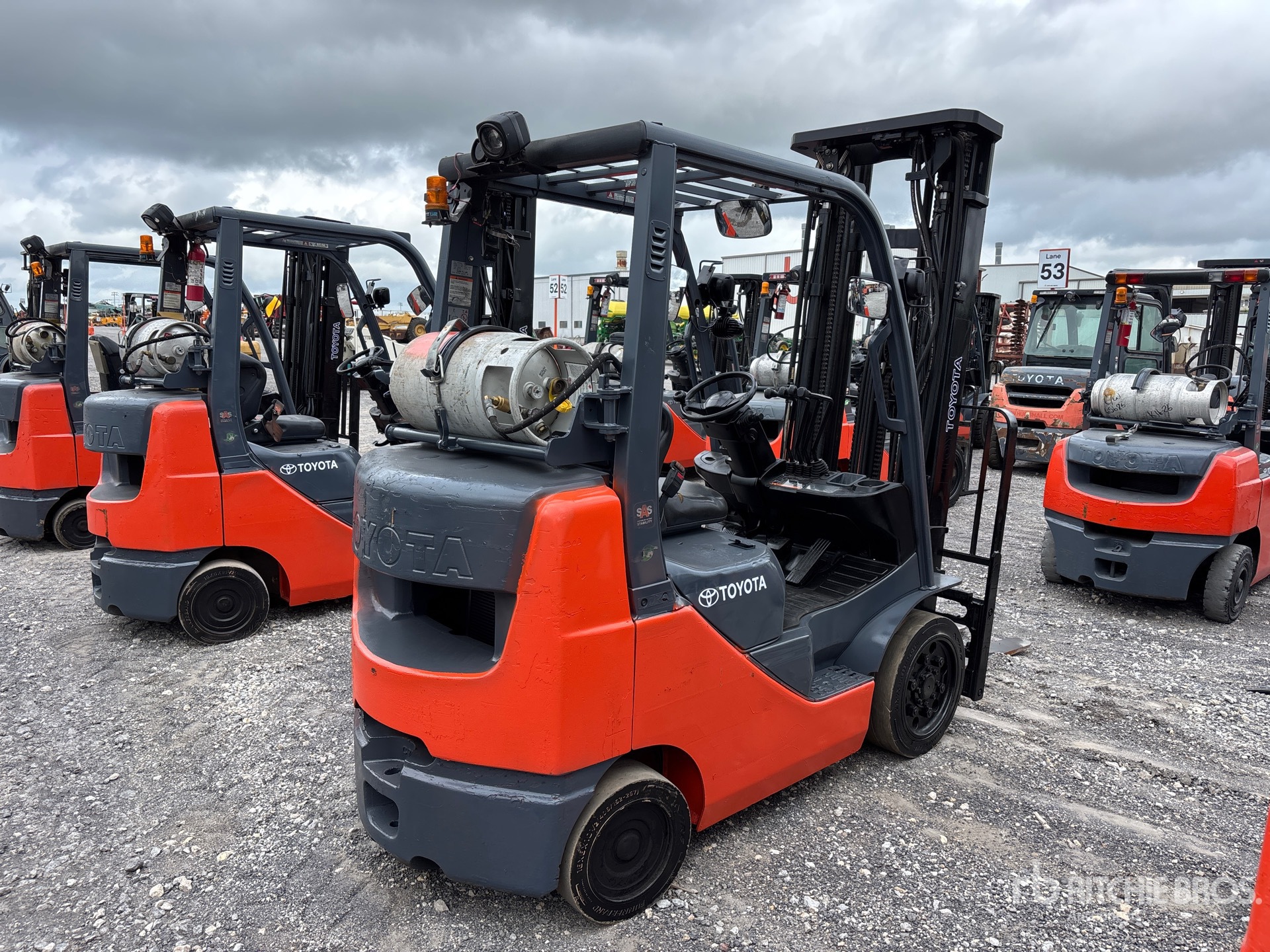3 Stage Mast, Full Free Lift, 218 in Max Lift Height, 93 in Lowered Mast Height, 48 in Forks, Side Shift, Fork Rotation, Toyota 4YECS 4 Cylinder 2.2 L LPG Engine