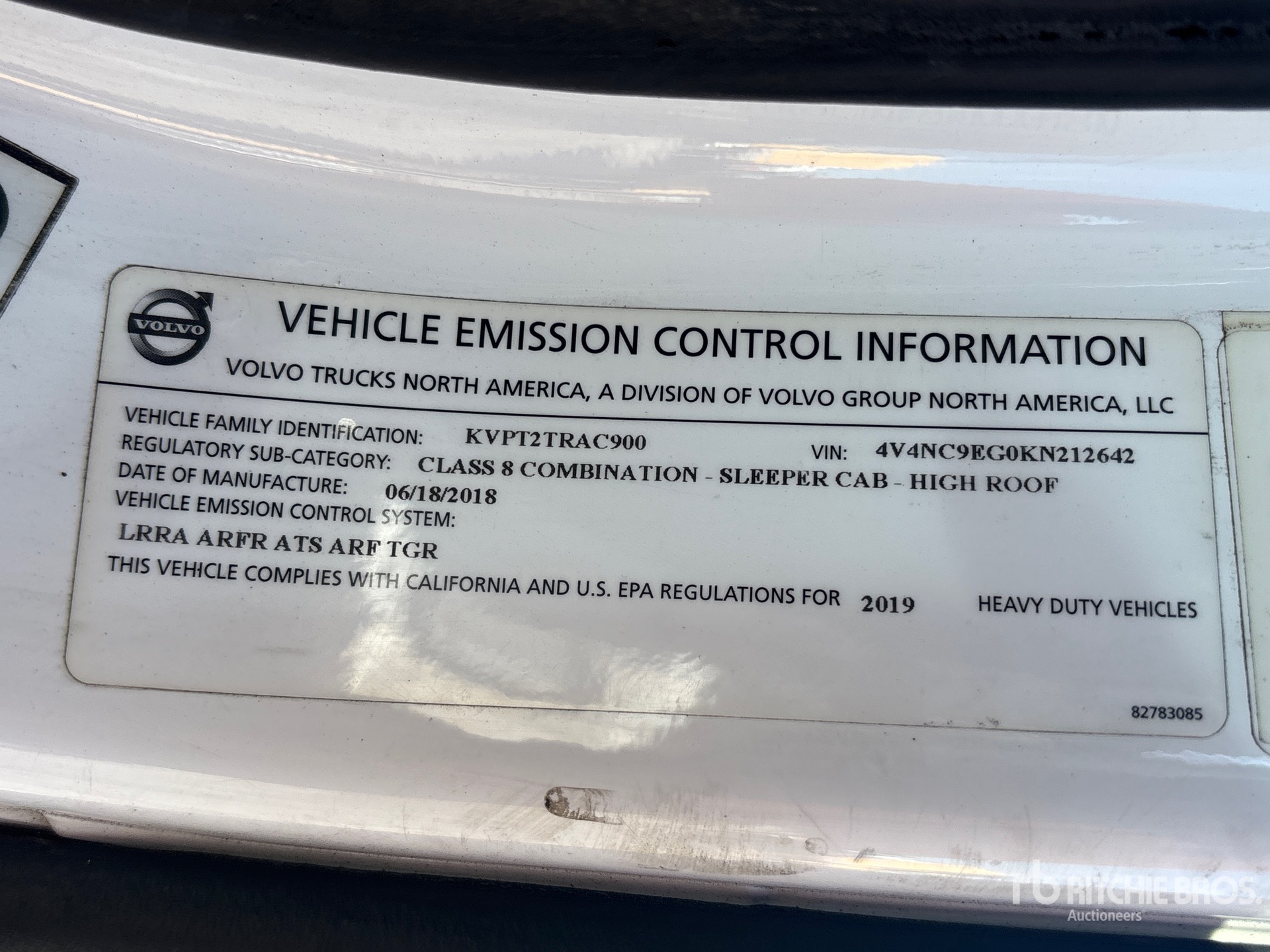 Volvo D13M 405 hp Engine, 2018 US EPA Label, 21742 Engine hrs, Volvo AT2612F 12-Speed Automated Transmission, 12500 lb Front Axle, 40000 lb Rears, 52500 lb GVWR, Engine Brake, 70 in High Rise Sleeper Cab, 221 in Wheelbase, Air Suspension, Aluminum Wheels, 11R22.5, Air Sliding 5th Wheel, Dual Fuel Tanks