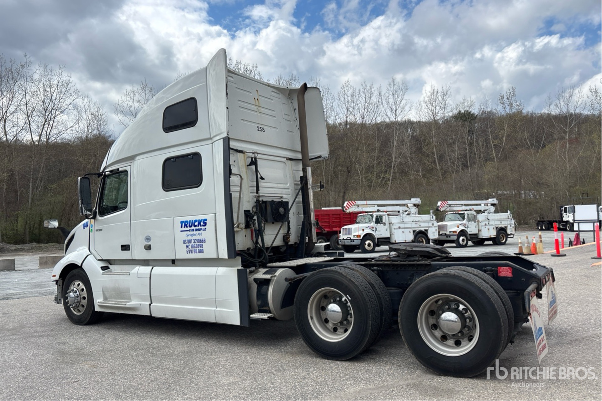 Volvo D13M 455 hp Engine, 2018 US EPA Label, 17 Engine hrs, Volvo ATO2612F 12-Speed Automated Transmission, 12500 lb Front Axle, 38000 lb Rears, 50500 lb GVWR, Engine Brake, 70 in High Rise Sleeper Cab, Bunk Beds, Bunk Heater, Sleeper Air Conditioner, 264 in Wheelbase, Air Suspension, Aluminum Wheels, 295/75R22.5, Air Sliding 5th Wheel, Dual Fuel Tanks