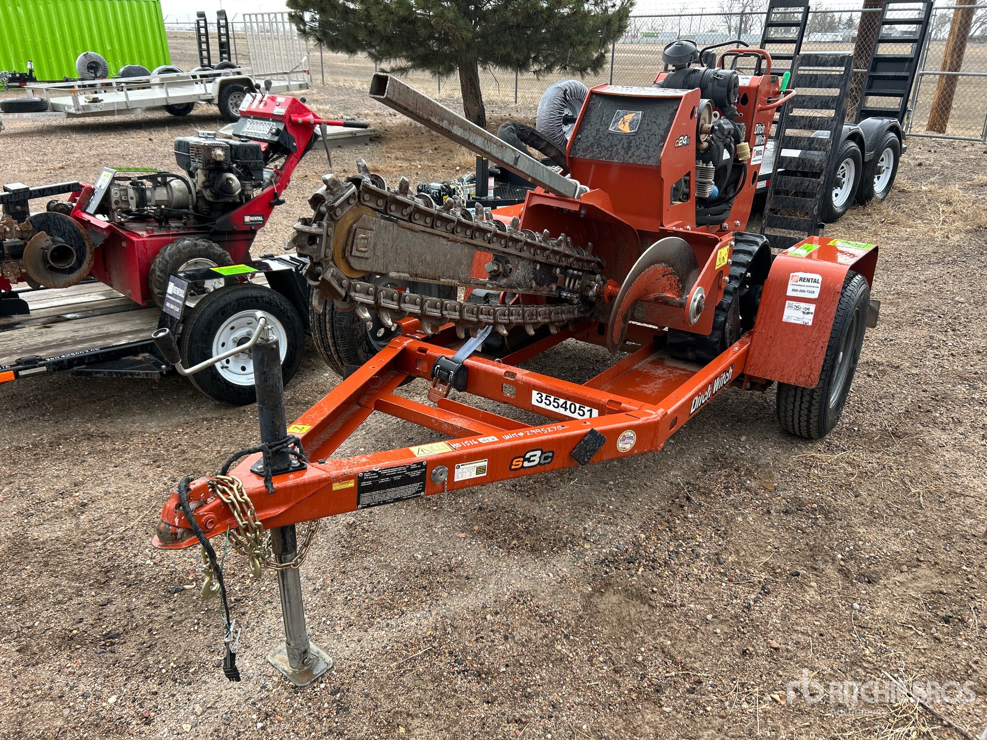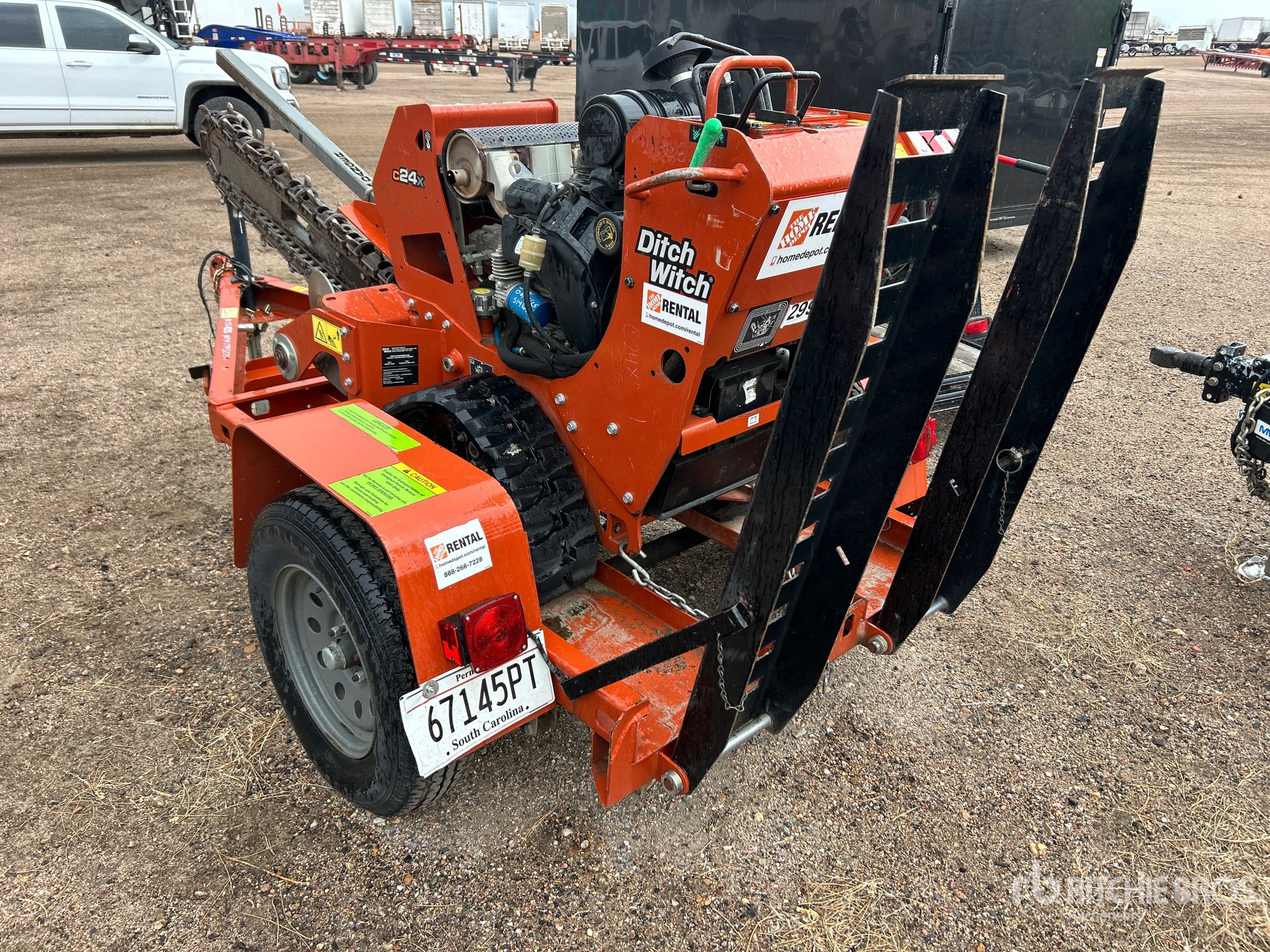2020 US EPA Label, Honda Gasoline Engine, 4 in Wide x 4 ft Long Rock Trencher Chain, 8 in Rubber Tracks, S/A Trailer, Ball Hitch