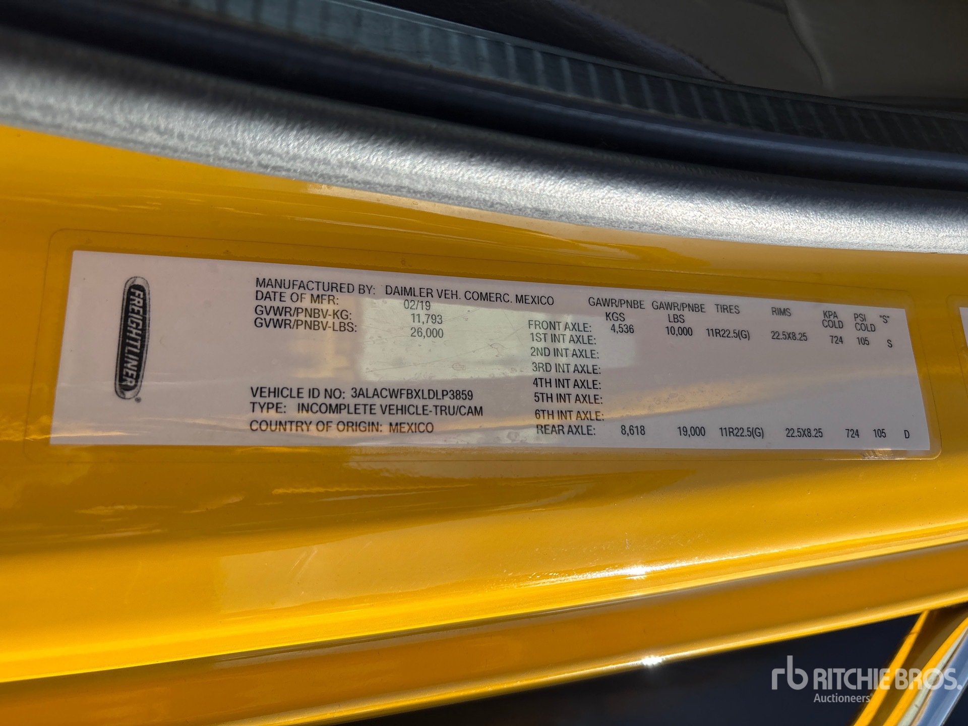 Detroit DD5 4 Cylinder 5.1 L Diesel 220 hp Engine, 2019 US EPA Label, Requires Diesel Exhaust Fluid, Allison 2200 Automatic Transmission, 10000 lb Front Axle, 19000 lb Rears, 5.56:1 Axle Ratio, 26000 lb GVWR, 11R22.5, Airliner Air Ride Suspension, 272 in Wheelbase, 26 ft x 102 in Bed, Liftgate