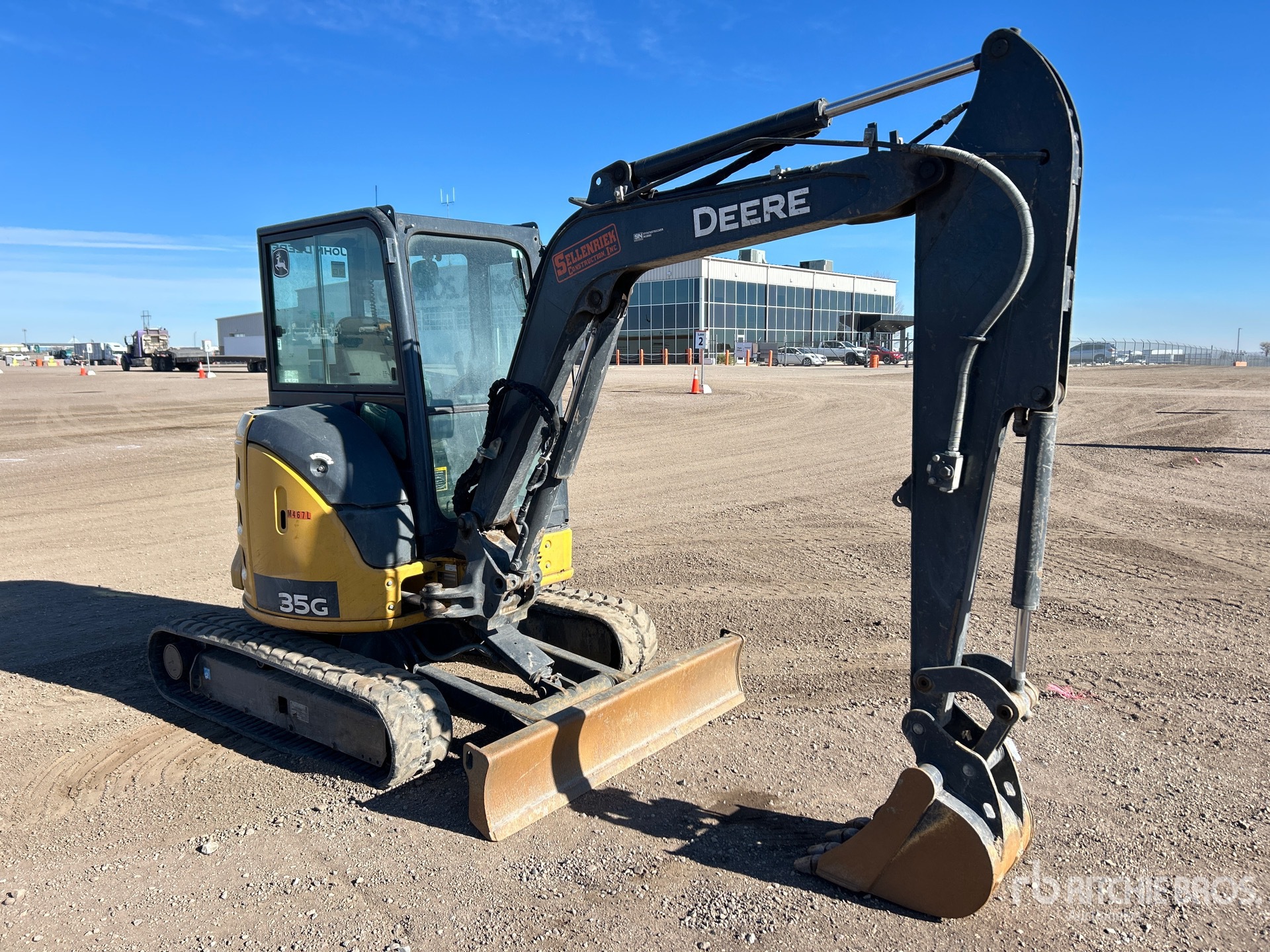 Enclosed Cab, Air Conditioner, Swing Boom, 5 ft 7 in Stick, Auxiliary Hydraulic Plumbing, Backfill Blade, 11.5 in Rubber Tracks, 18 in Digging Bucket, Thumb Bracket