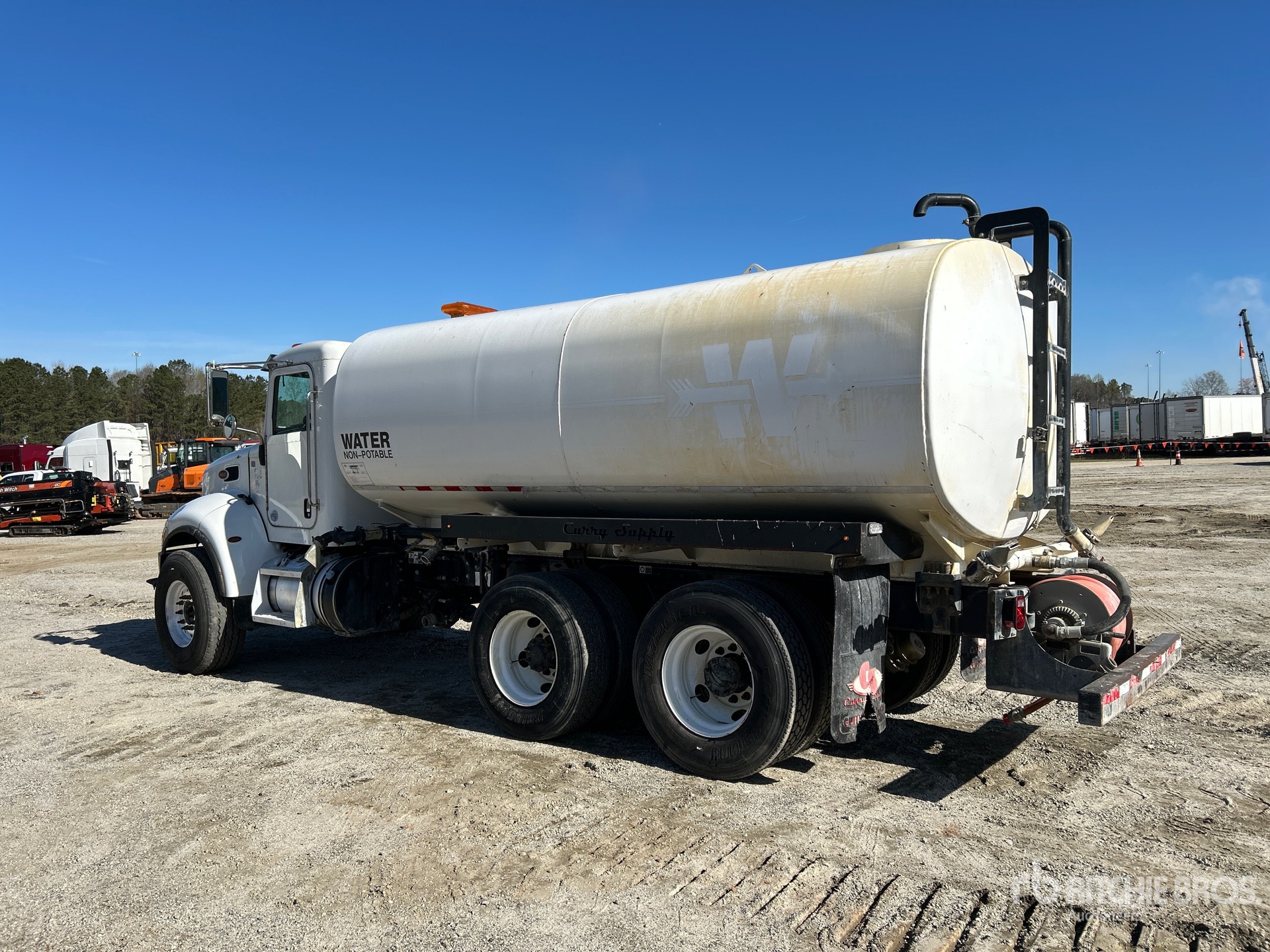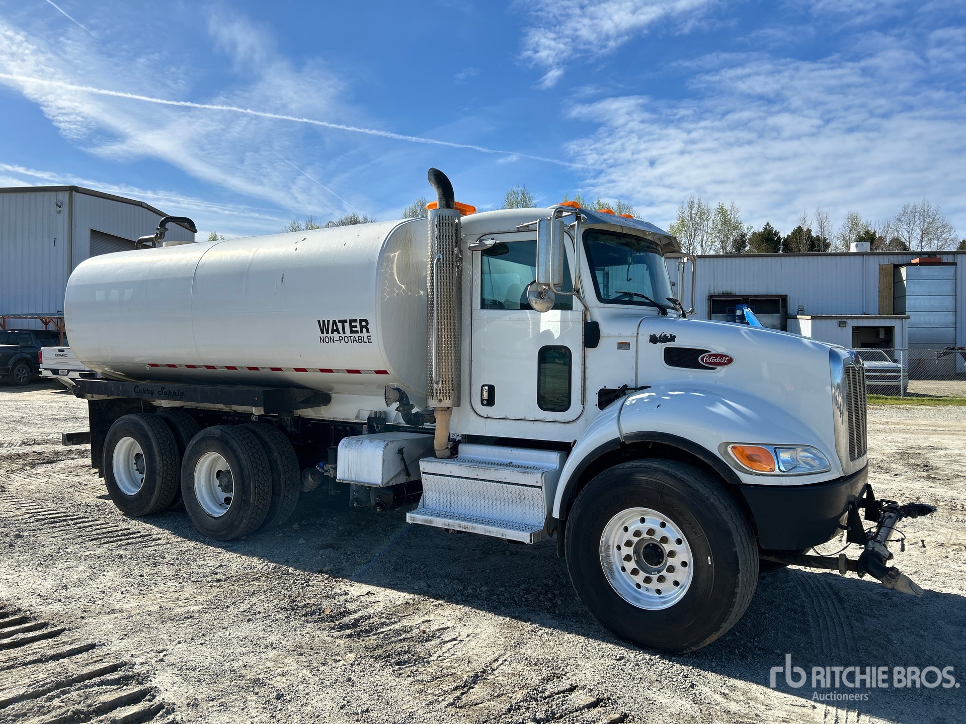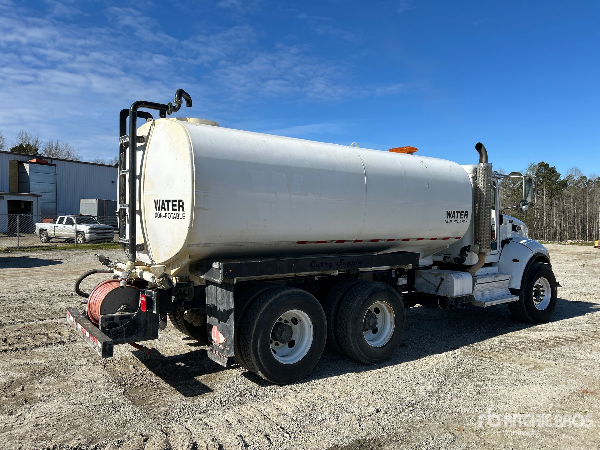 Paccar PX-9 6 Cylinder 8.9 L Diesel 300 hp Engine, 2019 US EPA Label, Requires Diesel Exhaust Fluid, 10551.0 Engine hrs, Engine Brake, Allison Automatic Transmission, 14600 lb Front Axle, 40000 lb Rears, Spicer DSP41 Drive Axles, 6.17:1 Axle Ratio, 54600 lb GVWR, Aluminum Front Wheels, 425/65R22.5 Front Tires, 11R22.5 Rear Tires, Double Frame, Hendrickson Haulmaax Rubber over Walking Beam Suspension, 189 in Wheelbase, PTO, CURRY Steel Tank, Transporters Choice PTO Driven Pump, 7 ft 5 in, Spray Bar, Hose Reel, Front Spray, Rear Spray, Side Spray