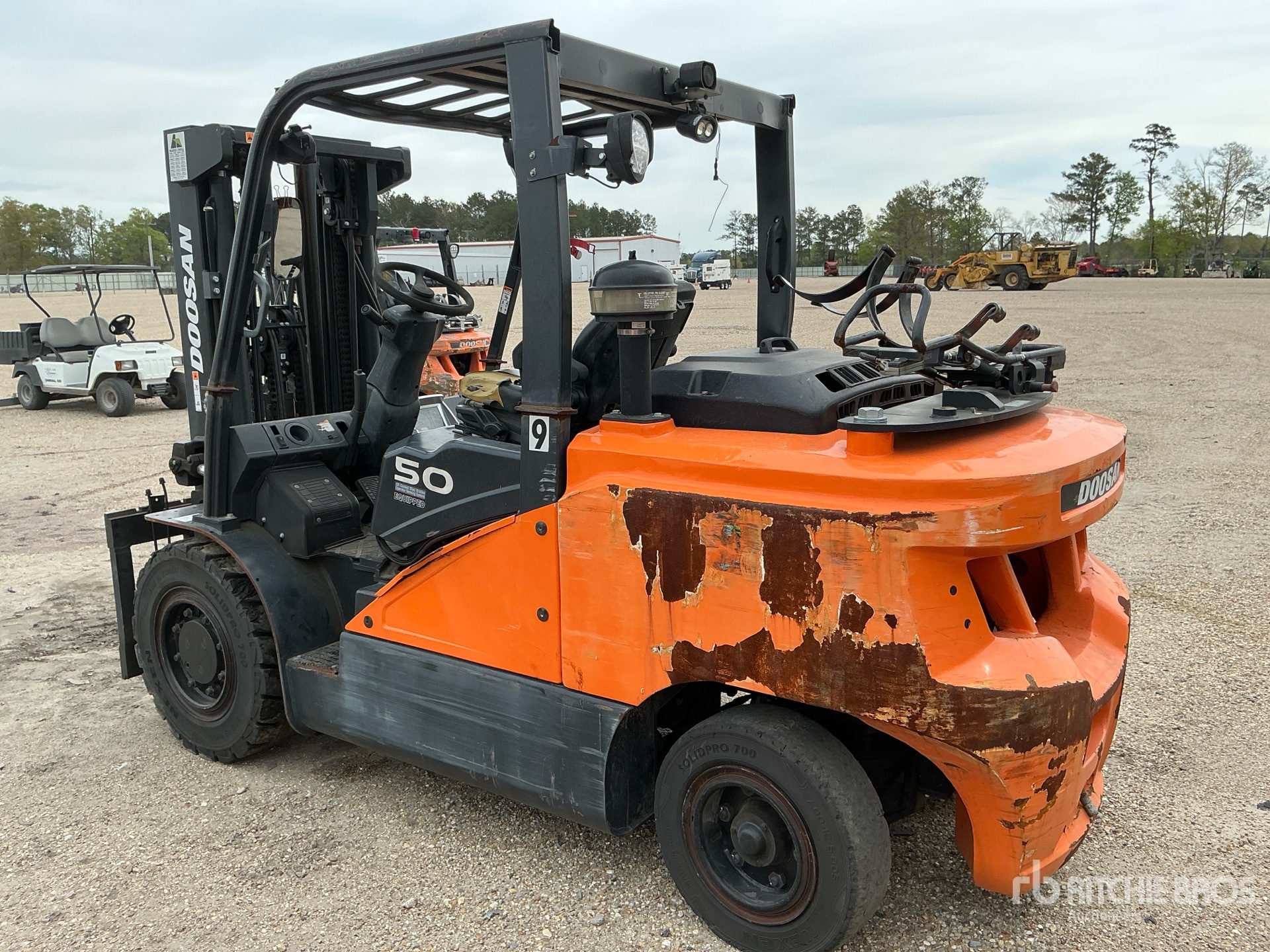Deficient Components/Systems Include but are not limited to: Control Station Section, Engine Section, Drivetrain Section, Hydraulics Section, Sold without a key or LPG tank, Auxiliary hydraulics disconnected. Seat does not lock.