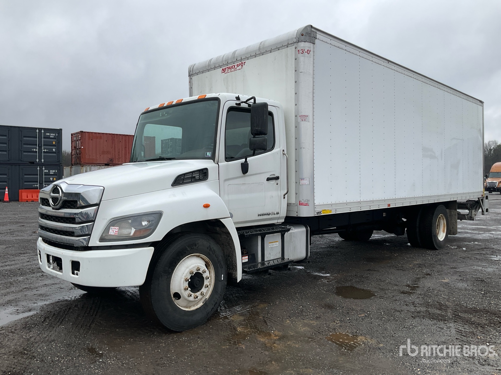 Hino 6 Cylinder Diesel Engine, US EPA Label, 7302 Engine hrs, Automated Transmission, 10000 lb Front Axle, 19000 lb Rears, 25950 lb GVWR, 11R22.5, Spring Suspension, 270 in Wheelbase, Mickey 26 ft x x 97 in High Body