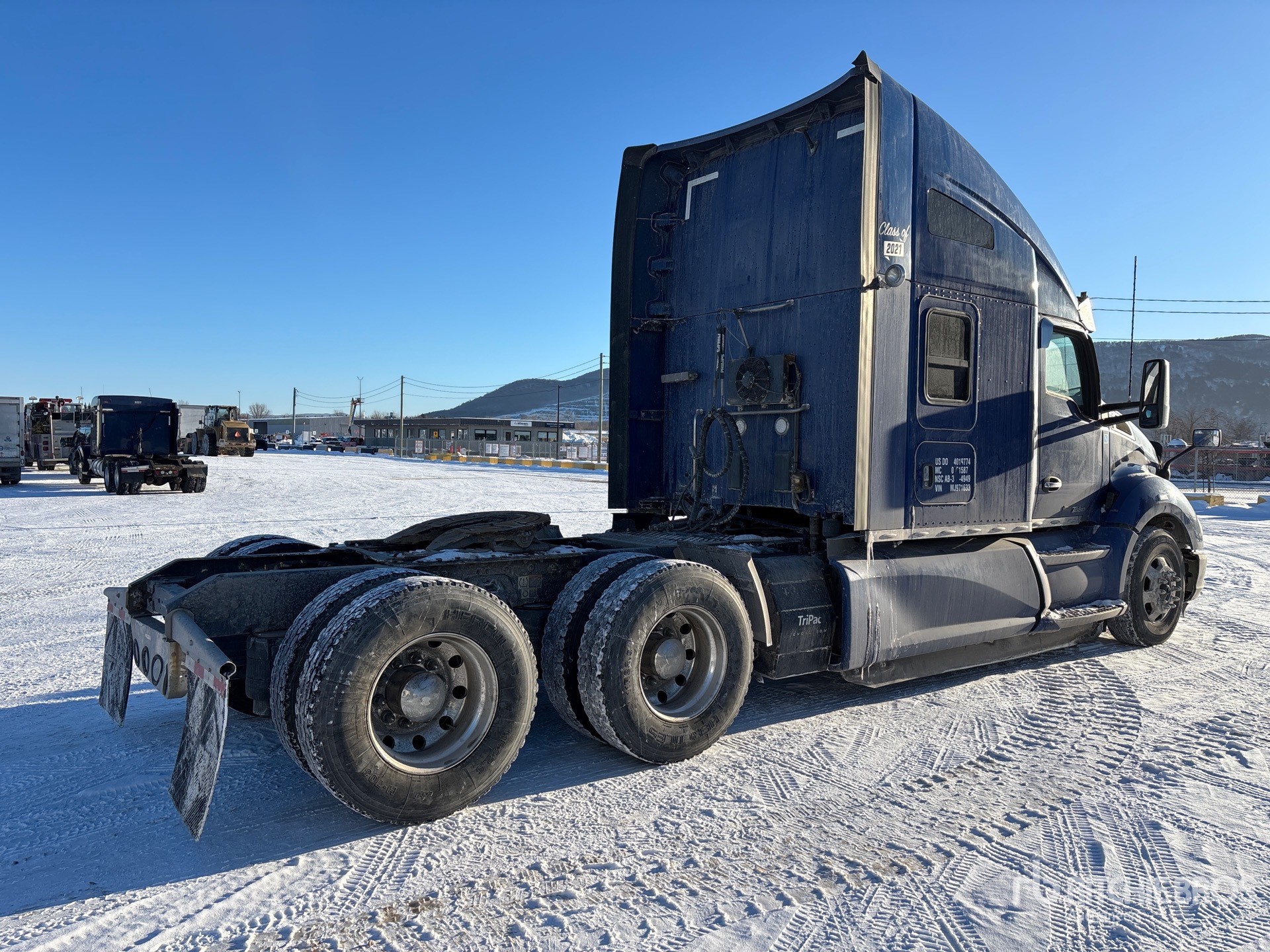 Paccar MX-13 455 hp Engine, 2020 US EPA Label, 12180 Engine hrs, Paccar PO-16F112 12-Speed Automatic, 13220 lb Front Axle, 40000 lb Rears, 24132 kg GVWR, Engine Brake, Differential Lock, 72 in Condo Sleeper Cab, Bunk Beds, Bunk Heater, Auxiliary Power Unit, Thermo King Sleeper Air Conditioner, 235 in Wheelbase, Air Suspension, Aluminum Outer Wheels, 11R22.5, Air Sliding 5th Wheel, Dual Fuel Tanks