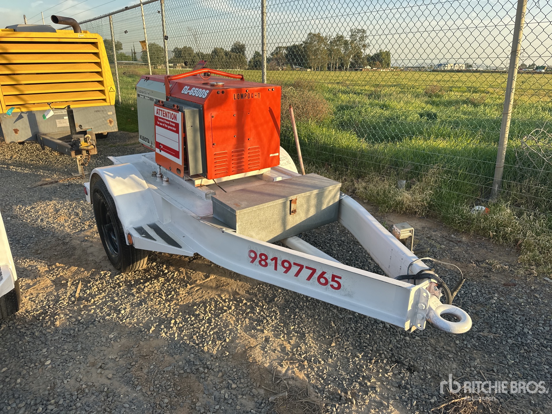 Kubota Diesel Engine, /6.5 kW, Rated Single Phase Output, 240 V / 120 V Rated Voltage, 240 V & 120 V Receptacles, Bottom Mounted Fuel Tank, Lunette Ring Carrier Trailer