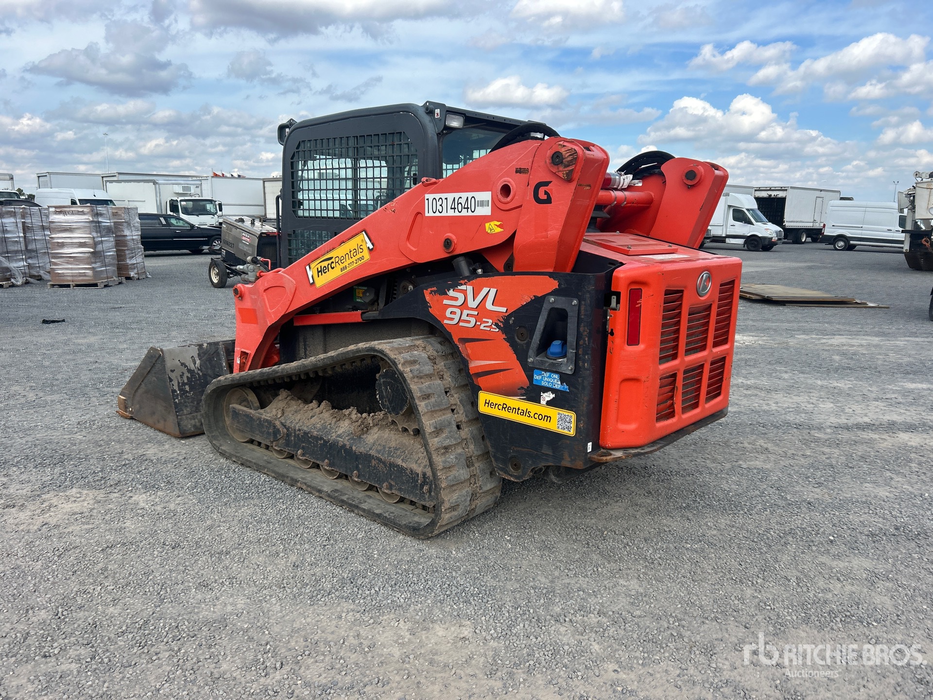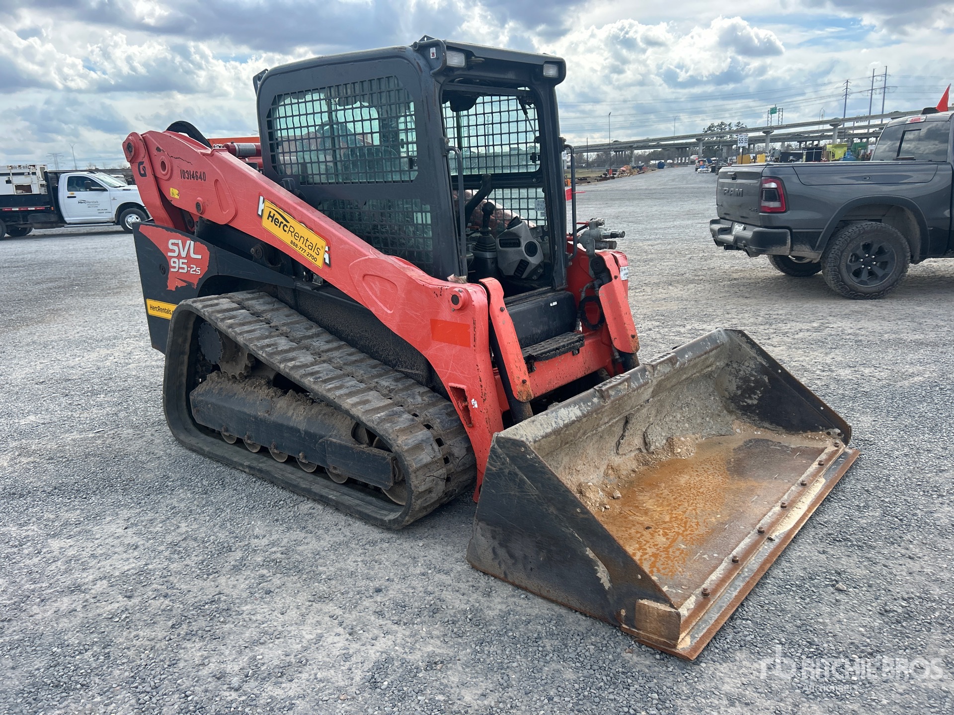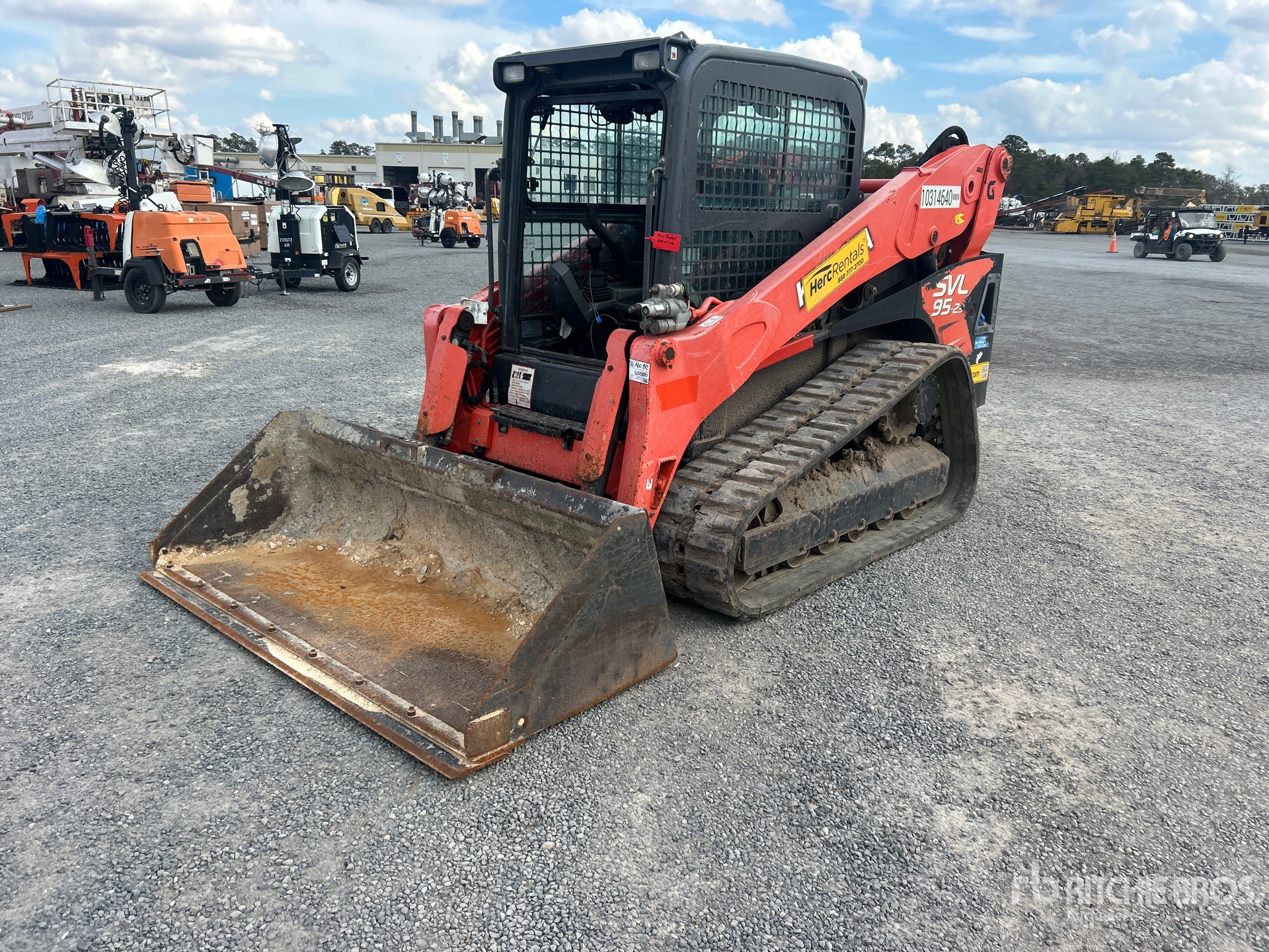 Enclosed Cab, Air Conditioner, Joystick Steering, Self Leveling, 2020 US EPA Label, 18 in Track Belts, 9 Pin Electric Kit, Hydraulic Coupler, 79 in Bucket, Equipment-From-Herc-Rentals