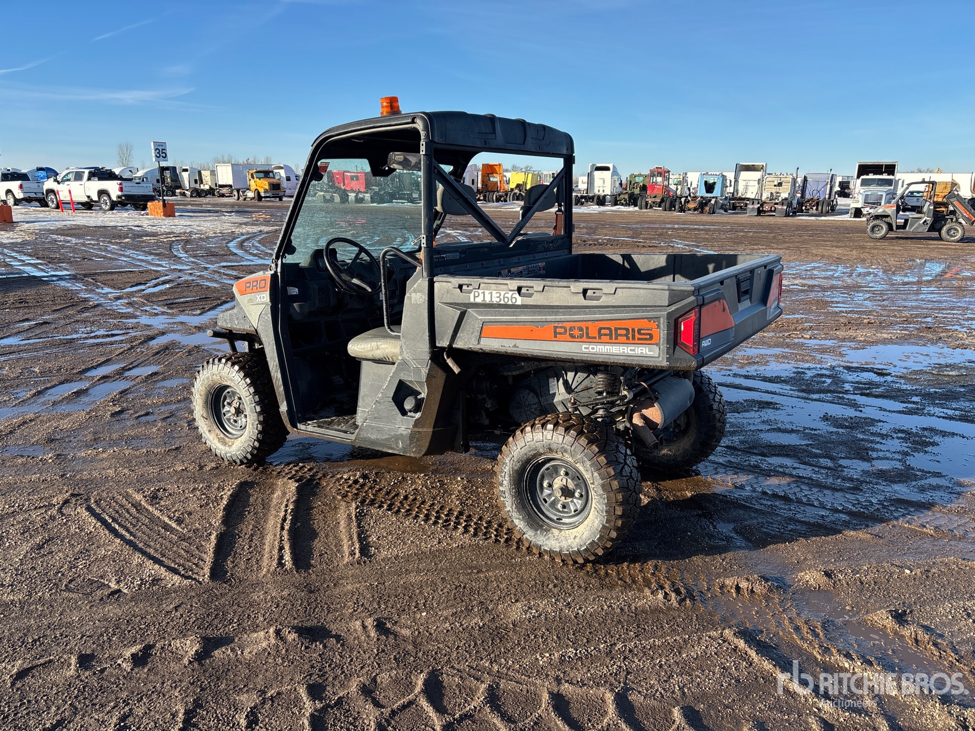 Canopy, 2 Passenger, Windshield, Manual Dump Bed, Polaris 2 Cylinder 39 hp Gasoline Engine