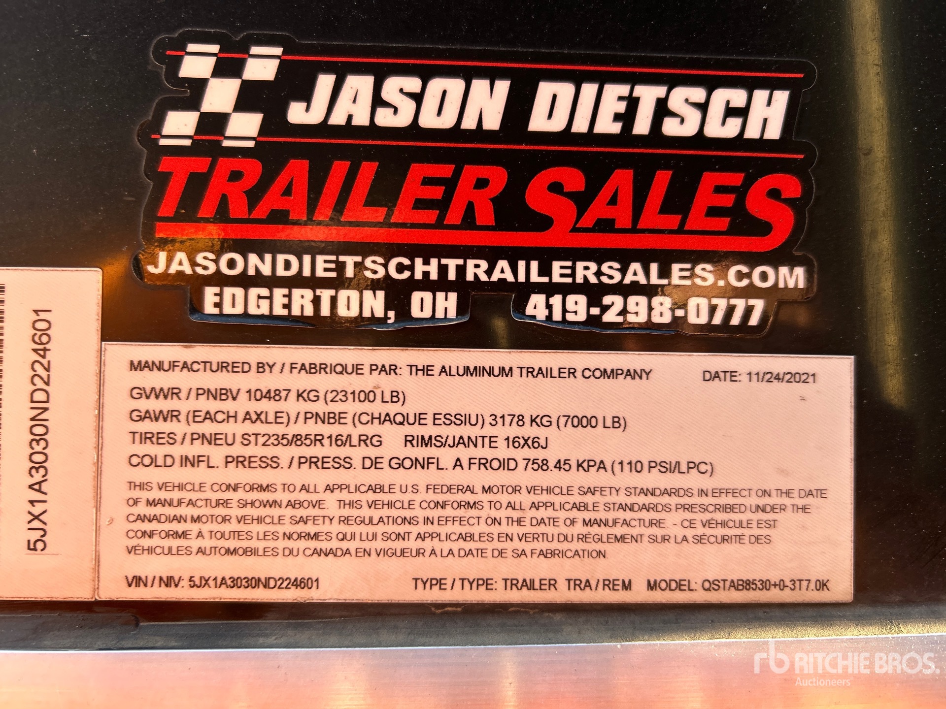 Located in Lane 43 Spot 17, Ball Hitch, Torsion Axle, Electric Brakes, Aluminum Wheels, 235/85R16 Tires, 23100 lb GVWR