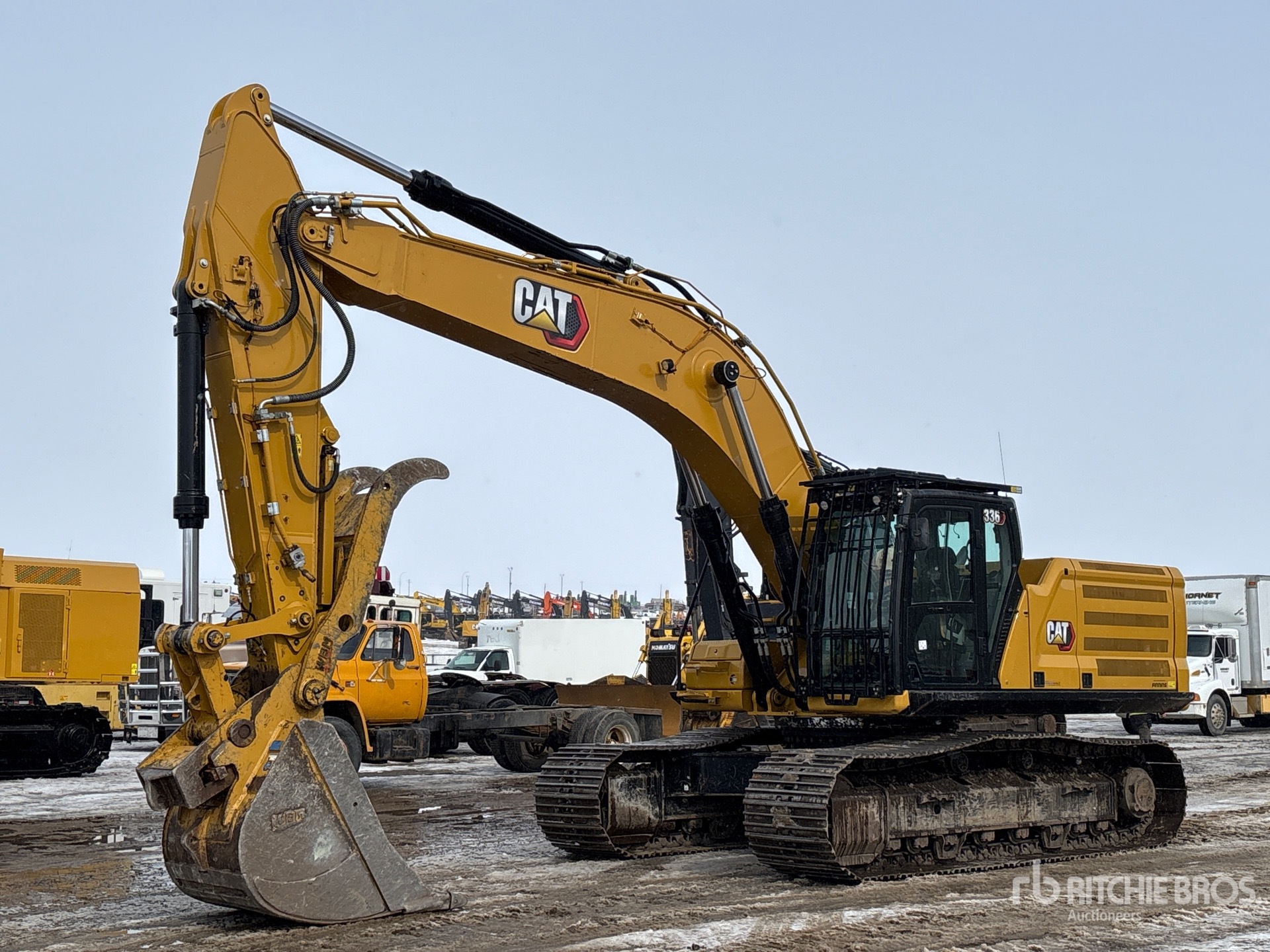 Air Conditioner, Straight Travel Pedal, Control Pattern Changer, Cab Screens, Rear & Side View Cameras, Cat 2D Integrated Grade Assist Grade Control, Tier 4, 2022 US EPA Label, CARB Compliant, Requires Diesel Exhaust Fluid, Engine Coolant Heater, Positive Air Shutoff, 9 ft 6 in Stick, 33.5 in Triple Grouser Track Shoes, Hydraulic Quick Coupler, 46 in Digging Bucket, Hydraulic Thumb, Catwalks