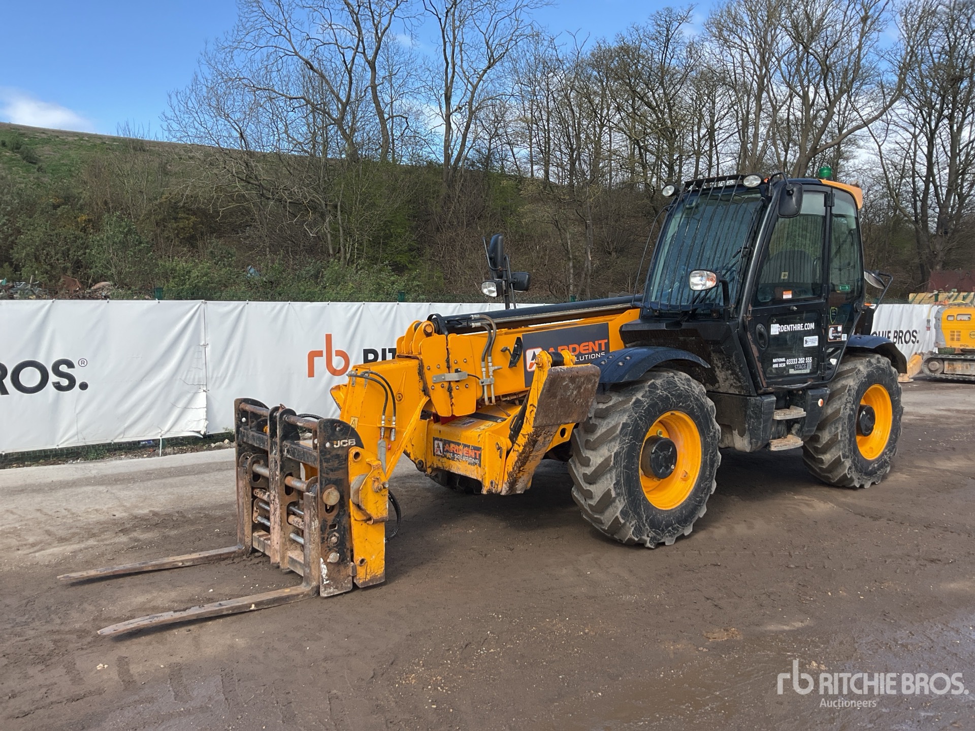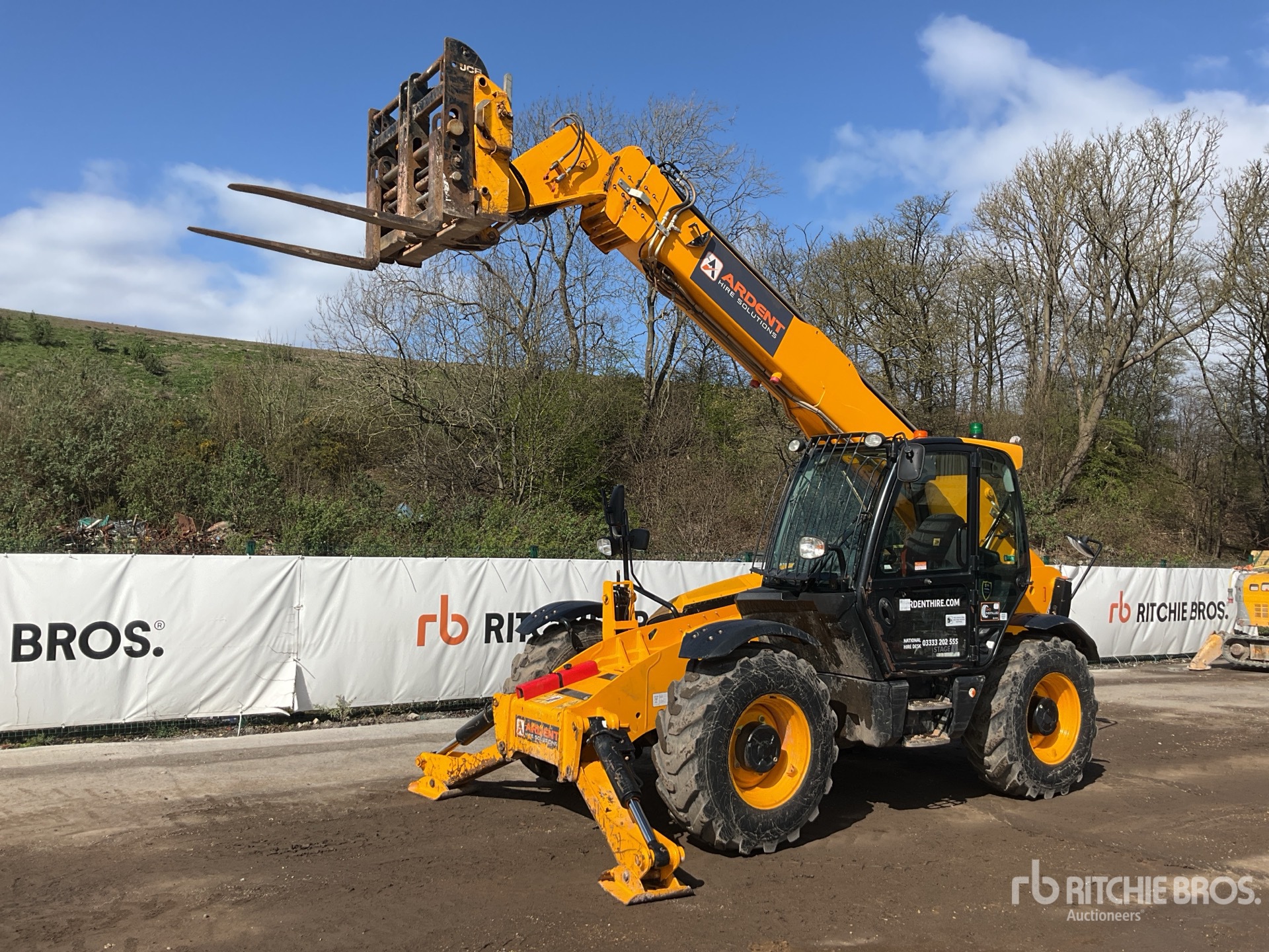 Enclosed Cab, Air Conditioner, Rear View Camera, Load Moment Indicator, 14 m Max Lift Height, 4000 kg Max Lift Capacity, 1060 mm Forks, Fork Positioner, Manual Coupler, Outriggers, Frame Leveling, Auxiliary Hydraulic Plumbing, 400/80-24 Tires