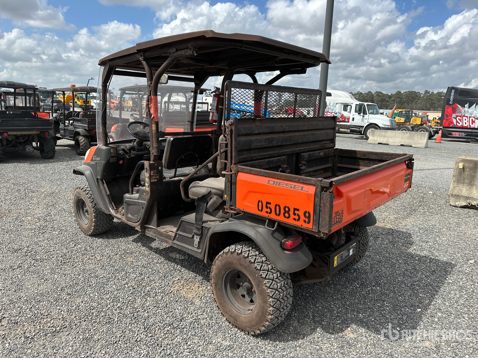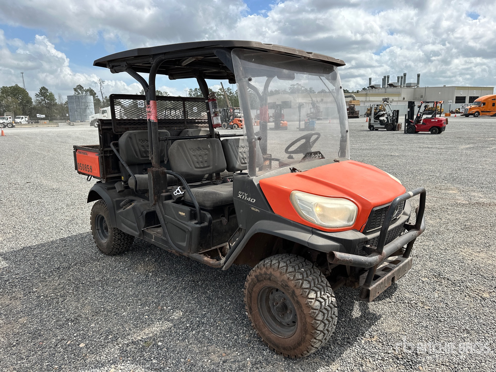 Canopy, 4 Passenger, Windshield, Rear Screen, Locking Front Differential, Brush Guard, Hitch Receiver, Hydraulic Dump Bed, 2021 US EPA Label, Kubota D1105 3 Cylinder 18.2 kW 1.1 L Diesel Engine