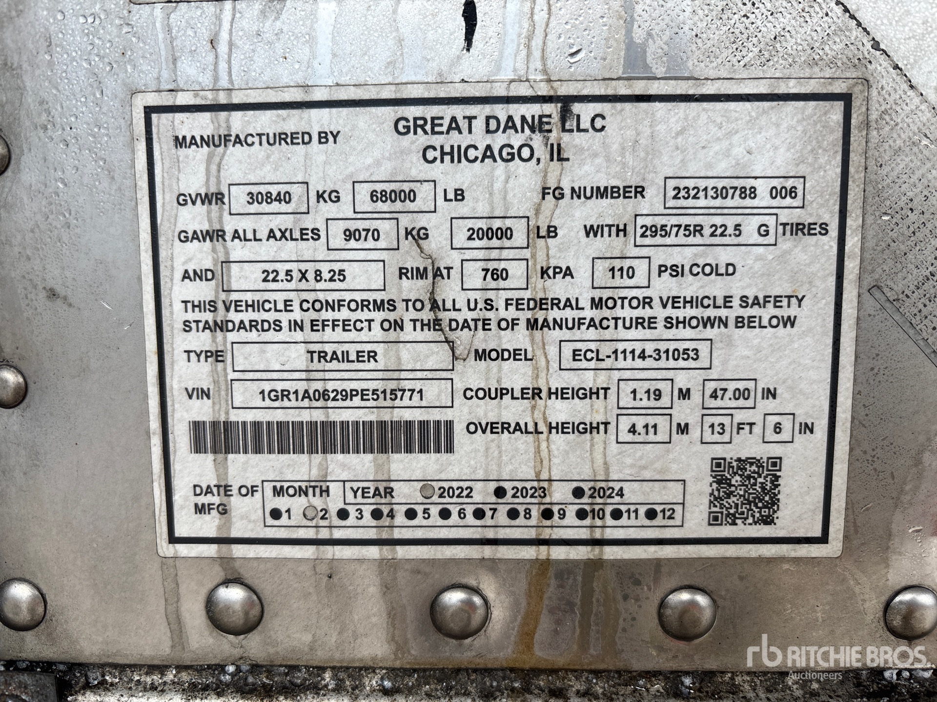 详细的设备信息范围有限,且除本文明确列出的方面或组件外,利氏兄弟拍卖公司并未检查设备中的任何其他方面或组件。除非另有明确声明,我们不会对设备或其组件作出任何形式的明示或暗示的陈述或保证。这包括但不限于关于功能、符合或遵循任何适用权力机构或监管机构的安全标准或要求、适用于任何特定用途,或者适销性的任何陈述或保证。我们强烈建议您在竞拍之前自行对设备进行详细检查。