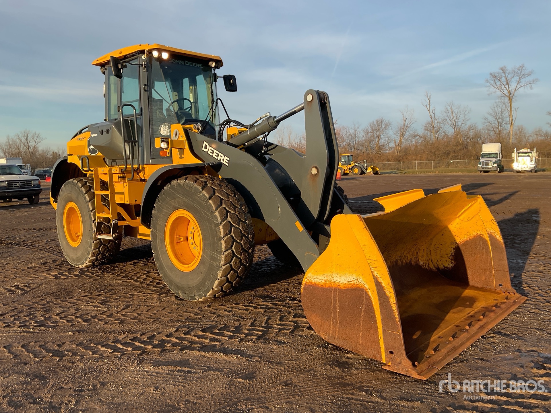 Enclosed Cab, Air Conditioner, Rear View Camera, Air Ride Seat, Ride Control, Traction Control, Loadrite On-Board Scale, Tier 4, Hydraulic Coupler, 100 in Bucket, 20.5R25 Tires