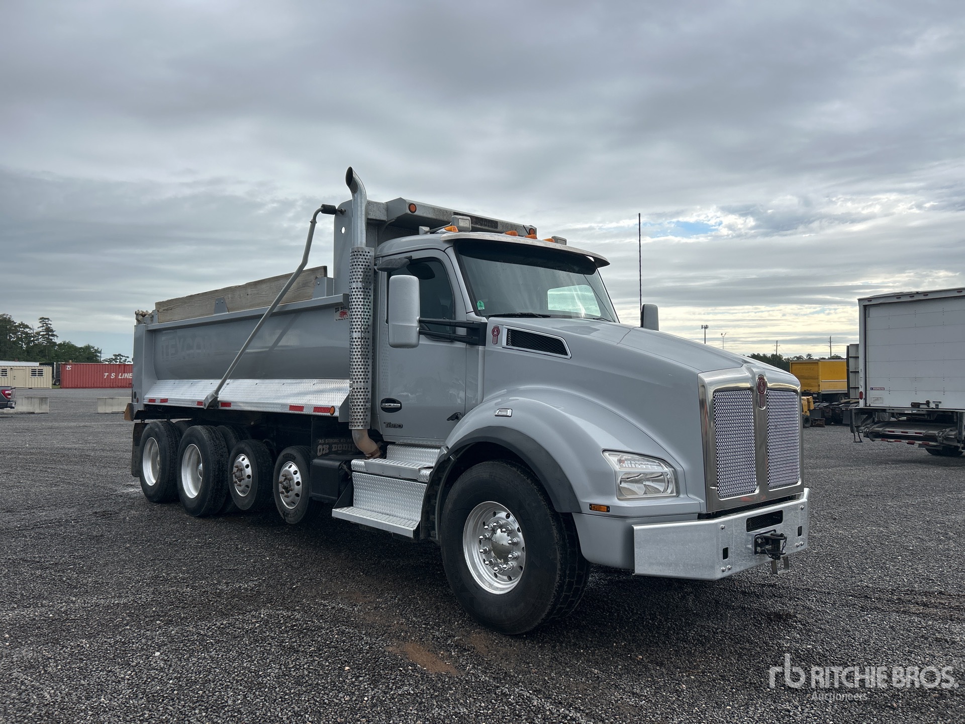 Located in Lane 33 Spot 45, Cummins X15 6 Cylinder 15 L Diesel 450 hp Engine, 2021 US EPA Label, Requires Diesel Exhaust Fluid, 7683 Engine hrs, Engine Brake, Automated Transmission, Double Differential Locks, 20000 lb Front Axle, 62000 lb Rears, 82000 lb GVWR, Aluminum Wheels, 425/65R22.5 Front Tires, 11R24.5 Rear Tires, 2 Steerable Air Lift Pusher Axle, Dual Steering Boxes, Hendrickson Haulmaax Suspension, 238 in Wheelbase, OX Bodies 18 ft 6 in Long x 4 ft 6 in High Steel Body, Round Bottom, Electric Roll Tarp