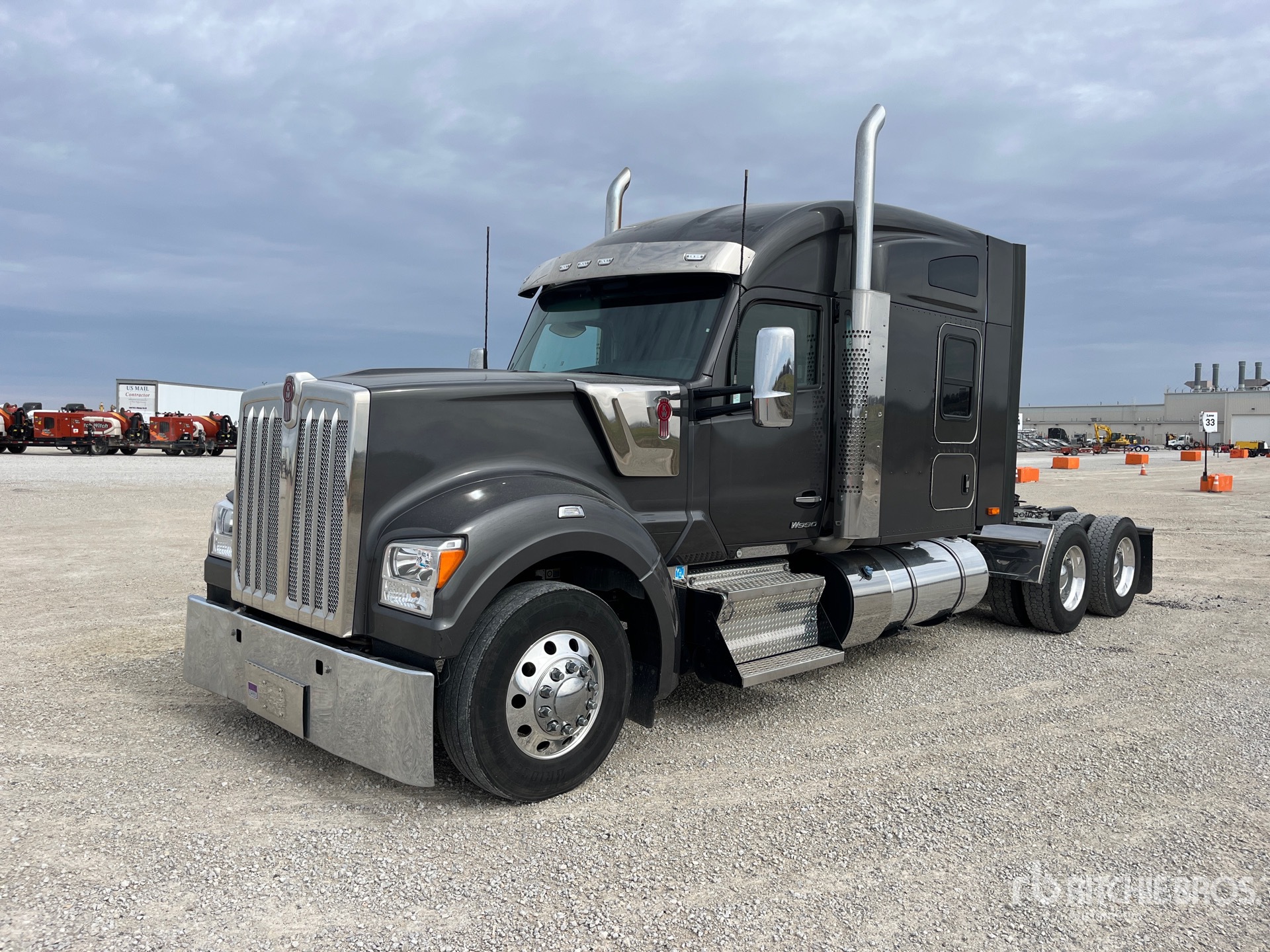 Paccar MX-13 510 hp Engine, 2022 US EPA Label, 13244 Engine hrs, Paccar PO-16F112 12-Speed Automated, 13200 lb Front Axle, 38000 lb Rears, 51200 lb GVWR, Engine Brake, 72 in Mid Roof Sleeper Cab, Auxiliary Power Unit, Thermo King Sleeper Air Conditioner, 265 in Wheelbase, Air Suspension, Aluminum Wheels, 295/75R22.5, Air Sliding 5th Wheel, Dual Fuel Tanks