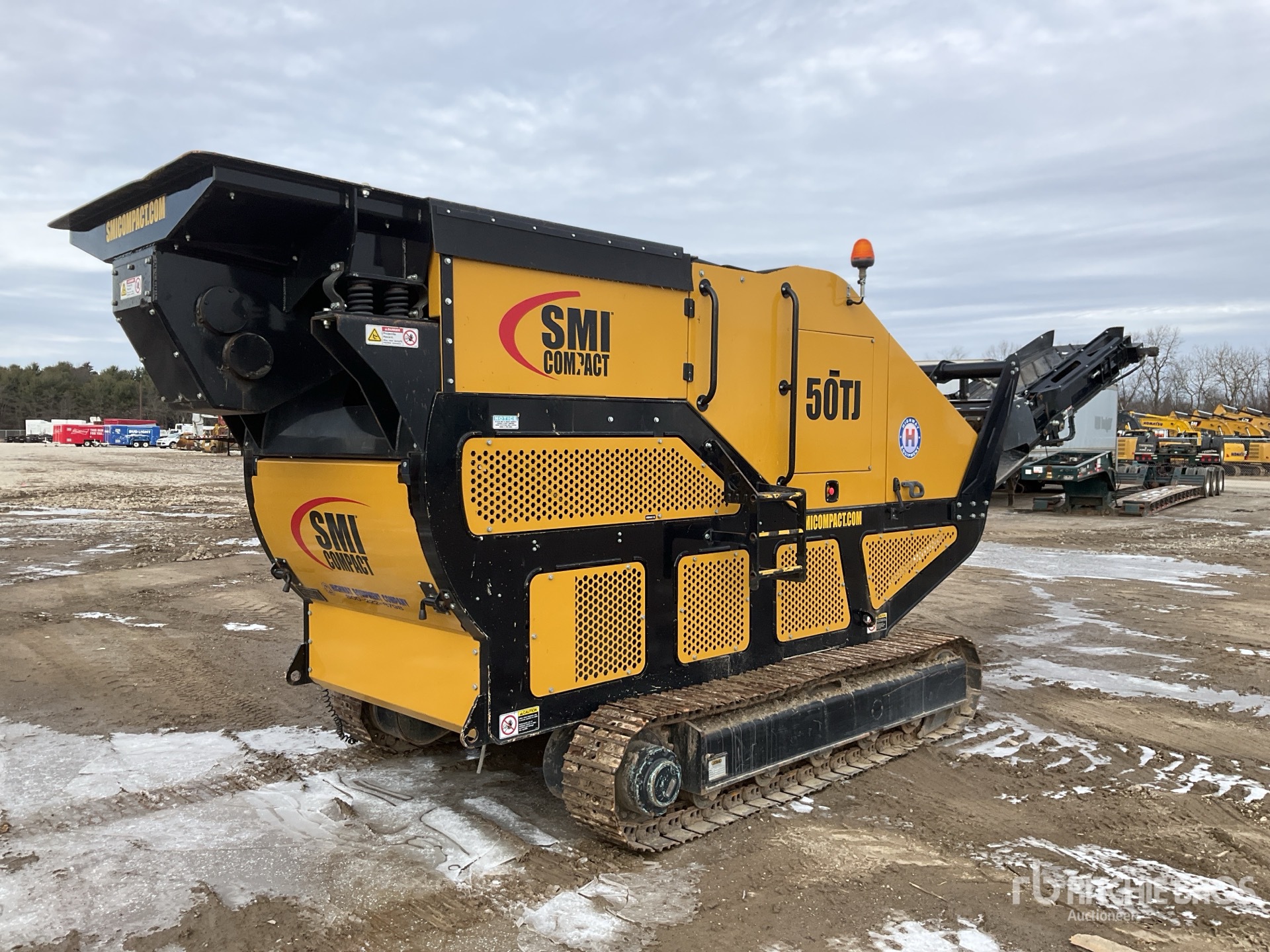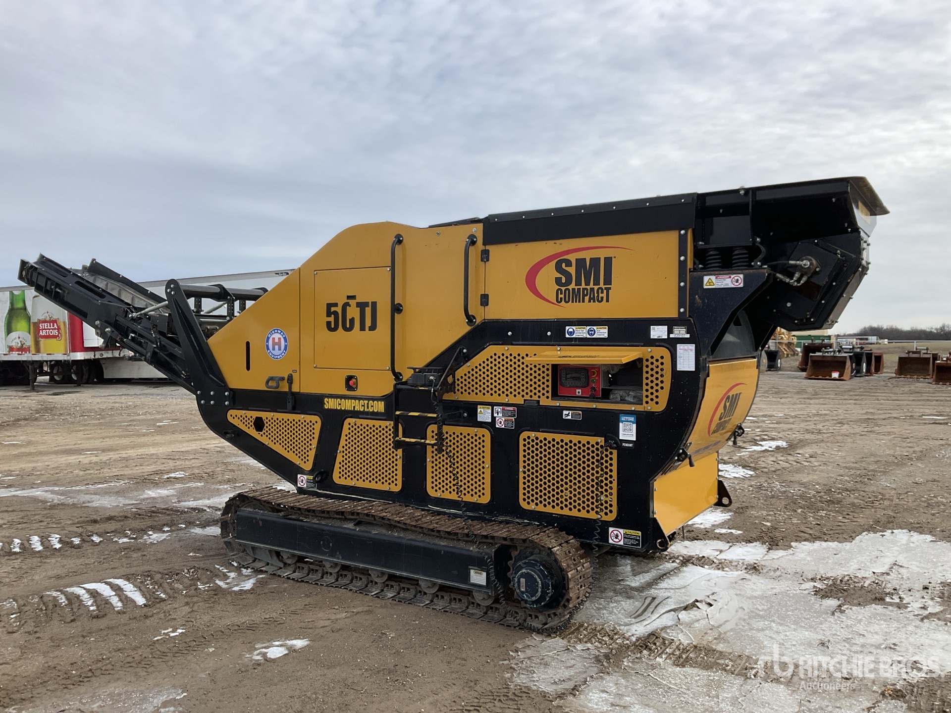 4 ft x 8 ft Vibratory Pan Feeder 32 in x 32 in Jaw Crusher, 23.5 in Wide End Discharge Conveyor, 13 in x 4 ft Cross Belt Magnet, Cable Remote Control, Kubota 4 Cylinder Diesel Engine, 12 in Triple Grouser Track Shoes