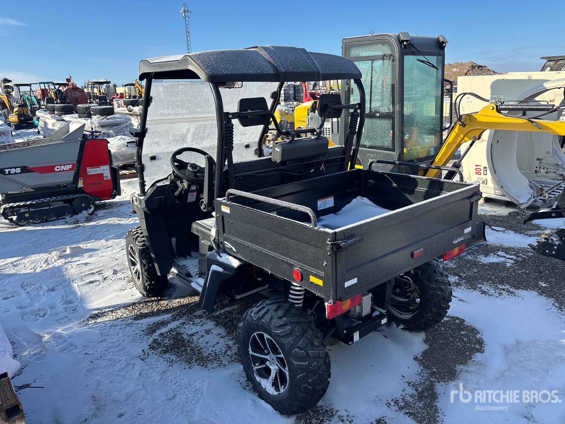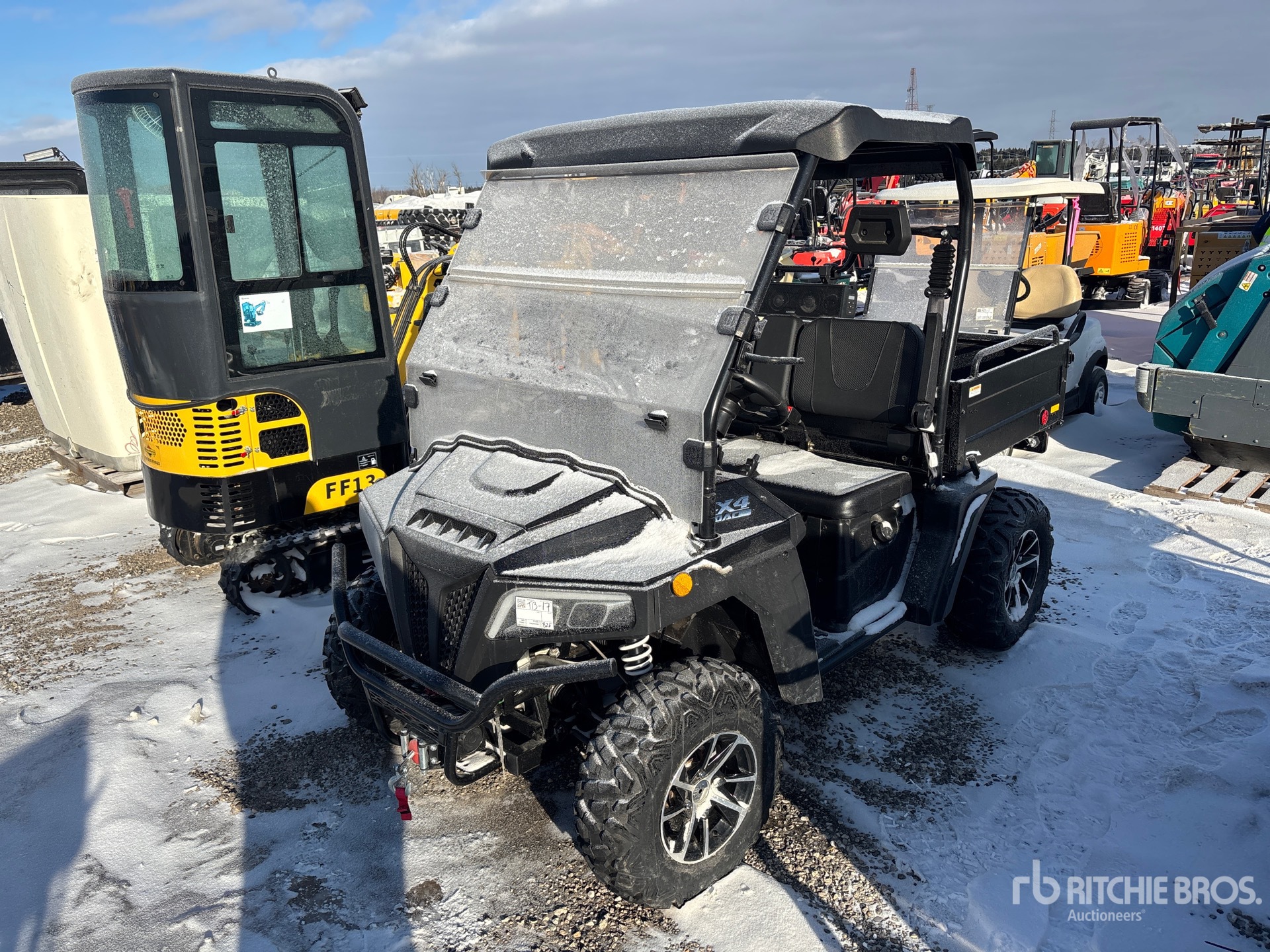 Canopy, 2 Passenger, Windshield, Winch, Brush Guard, Manual Dump Bed, 1 Cylinder Gasoline Engine, Dump box, 3000lb winch, tail gate, high low speed, stereo & screenplay.