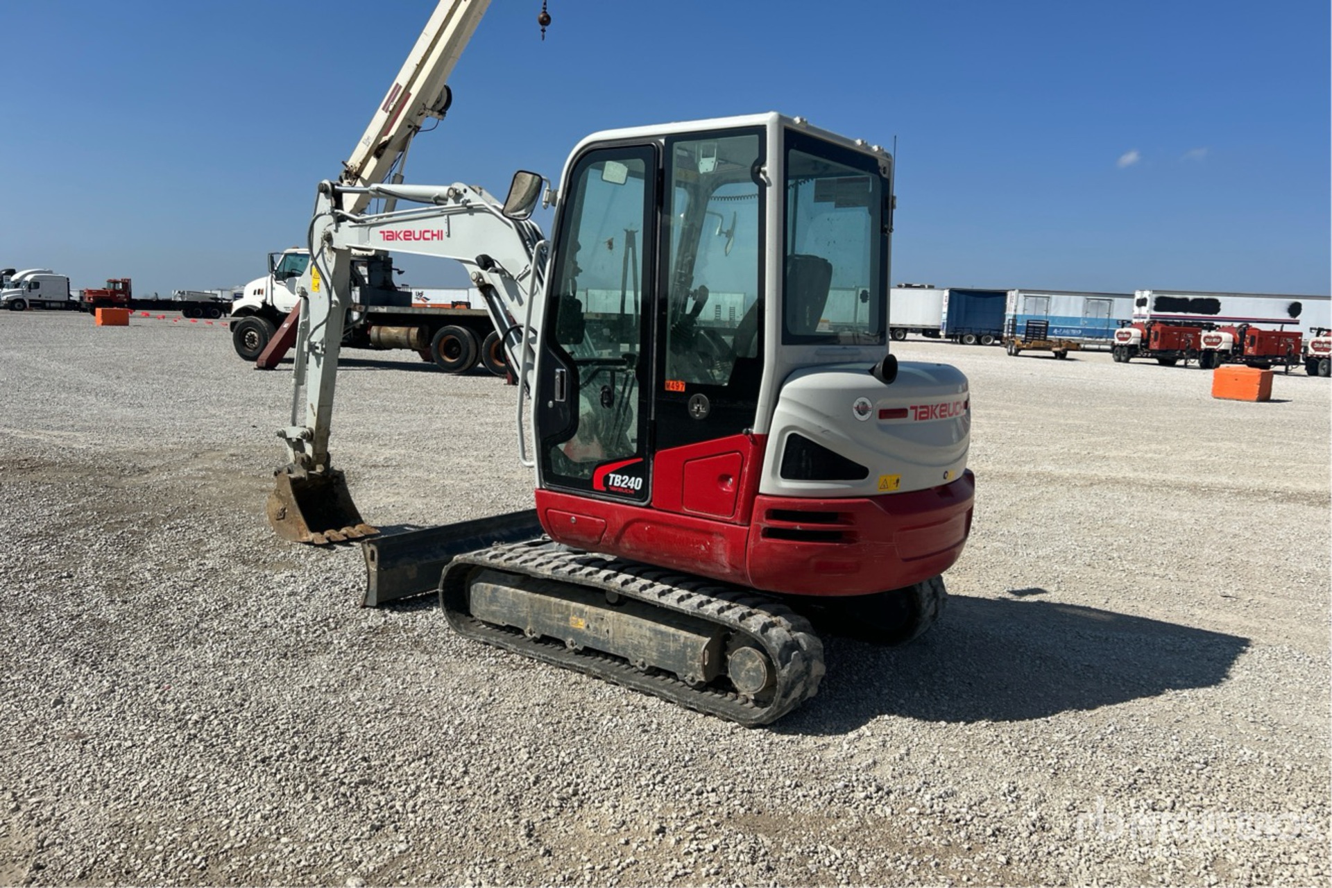 Enclosed Cab, Air Conditioner, 2023 US EPA Label, Swing Boom, 5 ft 4 in Stick, Auxiliary Hydraulic Plumbing, Backfill Blade, 14 in Rubber Tracks, 18 in Digging Bucket, Equipment-from-Sellenriek-Construction