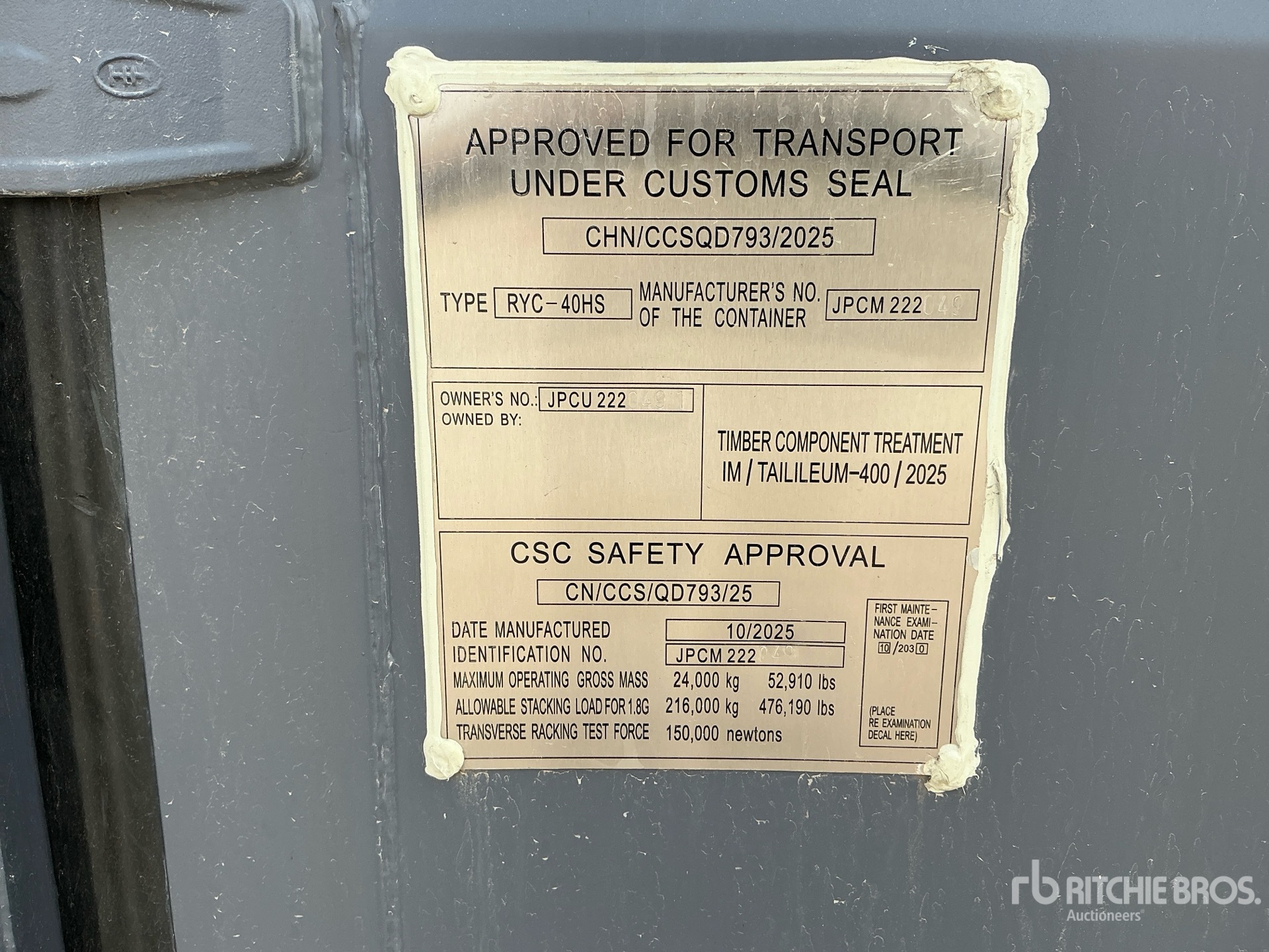 一名合格的利氏兄弟员工收集了详细的设备信息,并对该资产的关键组件进行了功能测试。您或您的代理人也可在拍卖日之前到现场检查任何拍品。