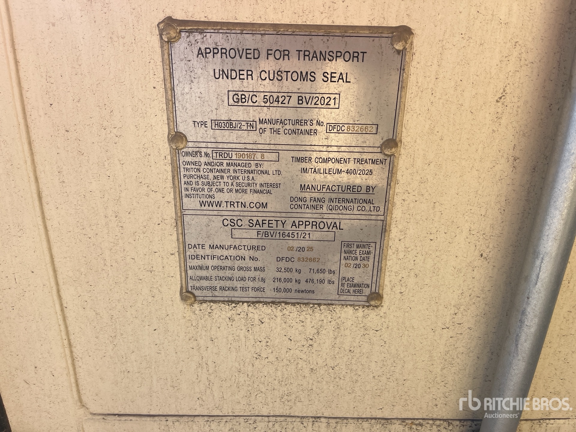 一名合格的利氏兄弟员工收集了详细的设备信息,并对该资产的关键组件进行了功能测试。您或您的代理人也可在拍卖日之前到现场检查任何拍品。