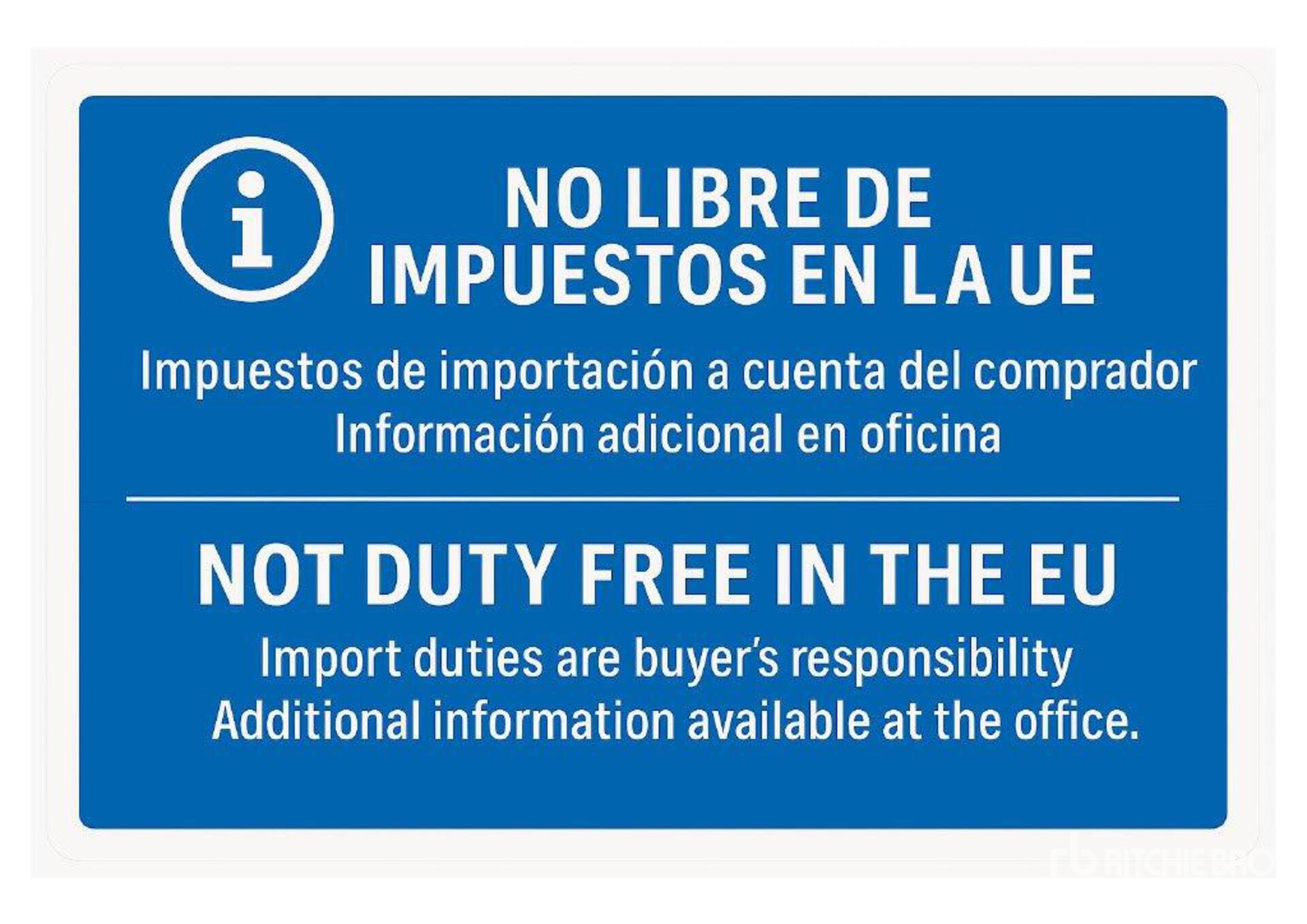 **NO LIBRE DE IMPUESTOS EN LA UE / NON DUTY FREE IN EU**Lote bajo deposito aduanero, Impuestos de importación a cuenta del comprador. Por favor, verifique la posible importación del producto en su país, Info adicional en la oficina / Lot under customs bonded yard. Import duties are the buyer's responsibility. Please check the import regulations in your country. Additional info in office.