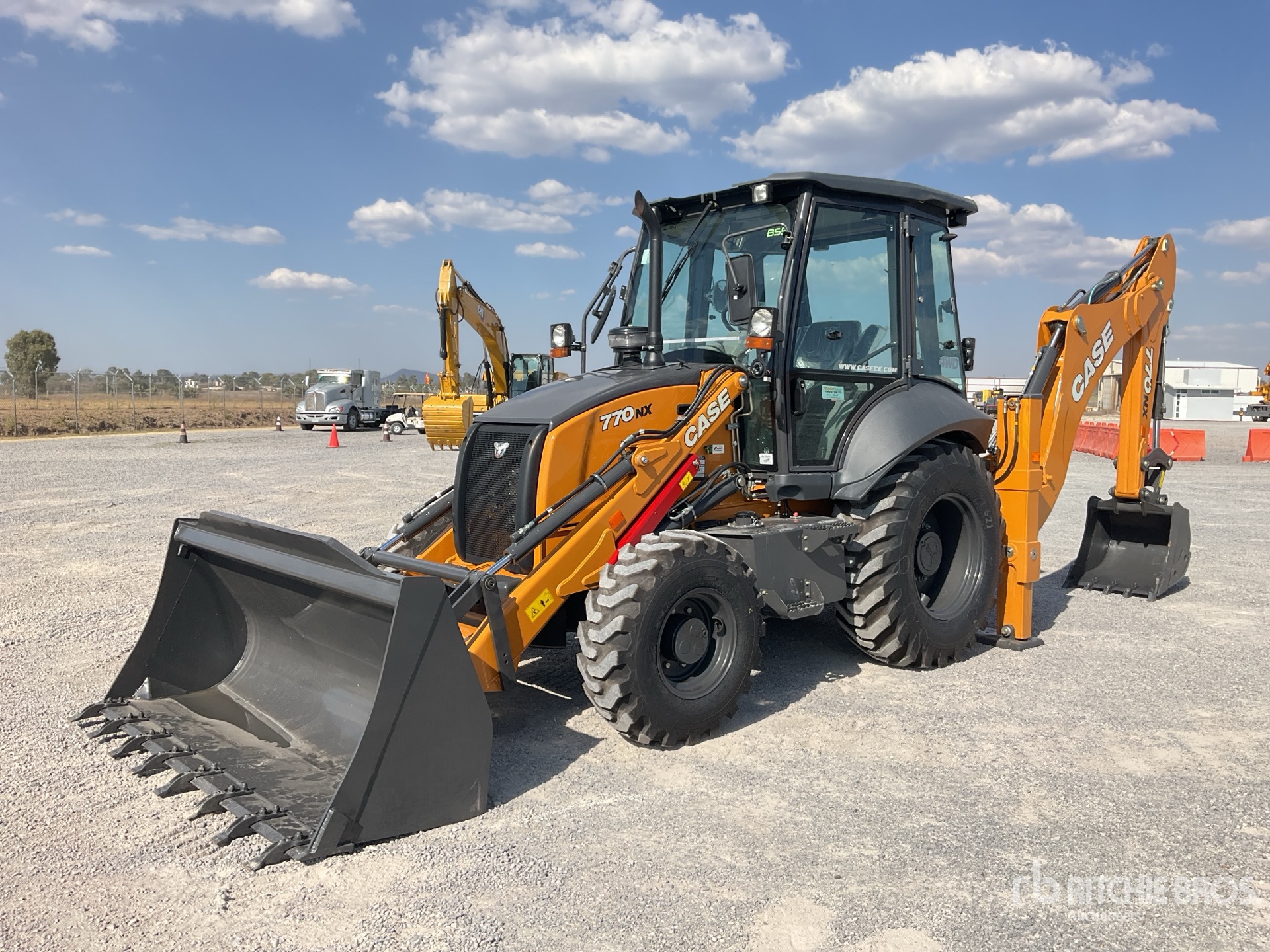 Enclosed Cab, 88 in Loader Bucket, Side Shift, 29 in Backhoe Digging Bucket, DPF System / Cabina, Cucharon Cargador 88 in, Desplazamiento Lateral, Cucharon Retroexcavador 29 in, Con Sistema de Regeneracion DPF