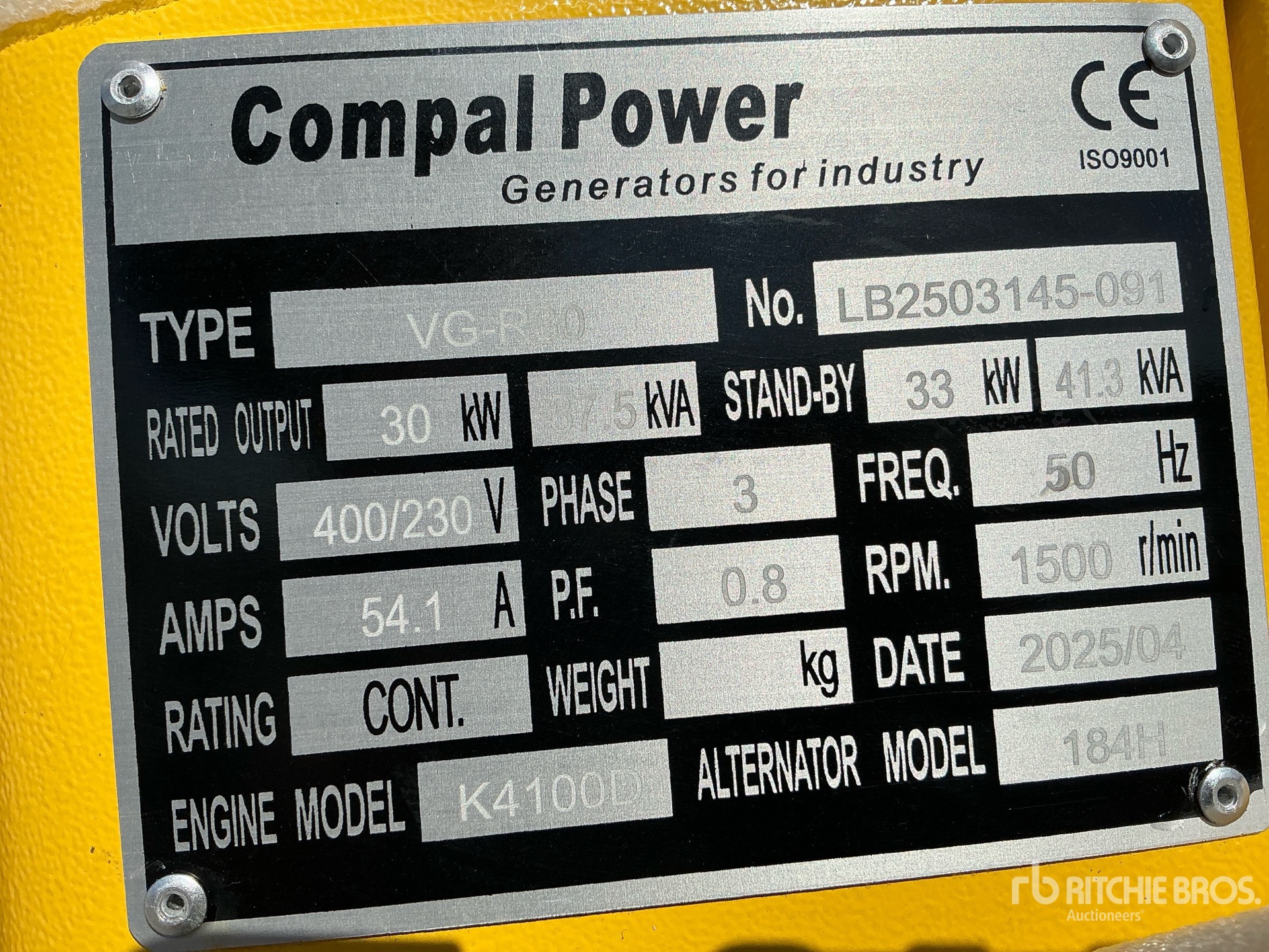 4 Cylinder Diesel Engine, /30 kW Rated 3 Phase Output