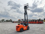 3 Stage Mast, Full Free Lift, 179 in Max Lift Height, 83 in Lowered Mast Height, 60 in Forks, Side Shift, Quanchai 4 Cylinder Diesel Engine, / Mastil 83 in 3 Etapas, Elevacion Libre Completa, Elevacion Max 179 in, Horquillas 60 in, Desplazamiento Lateral, Motor Quanchai 4 Cilindros Diesel