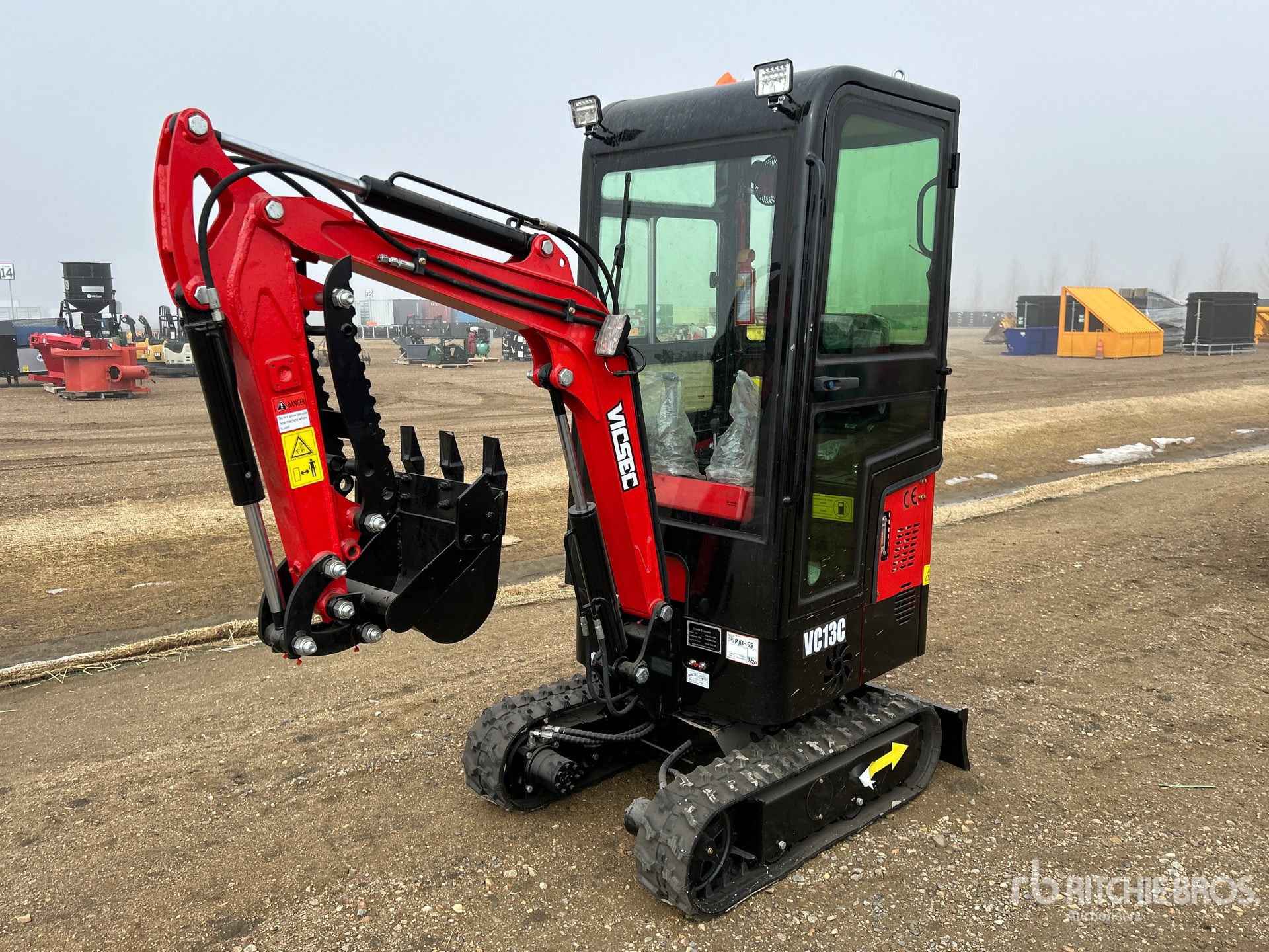 Enclosed Cab, 2025 US EPA Label, 2 ft 7 in Stick, Auxiliary Hydraulic Plumbing, Backfill Blade, 7 in Rubber Tracks, 16 in Digging Bucket, Manual Thumb