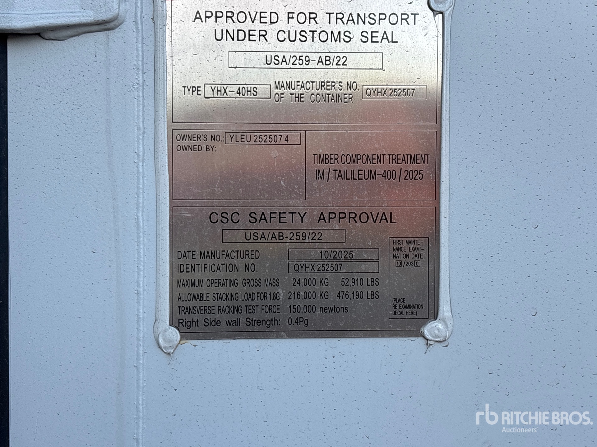 一名合格的利氏兄弟员工收集了详细的设备信息,并对该资产的关键组件进行了功能测试。您或您的代理人也可在拍卖日之前到现场检查任何拍品。