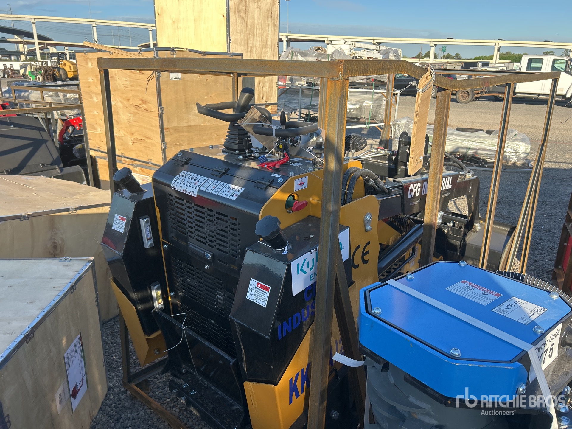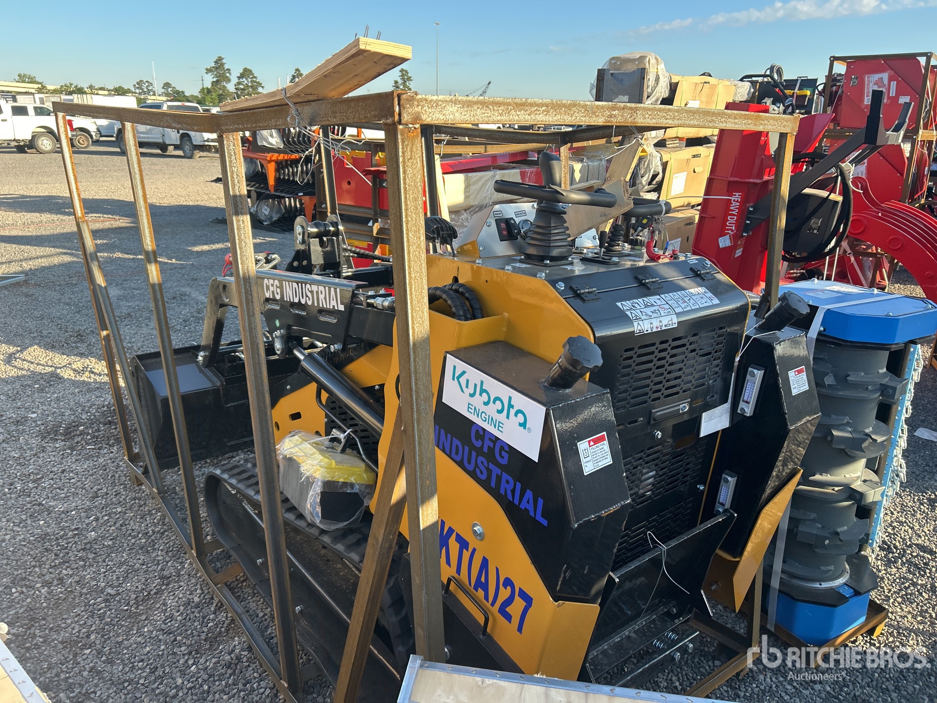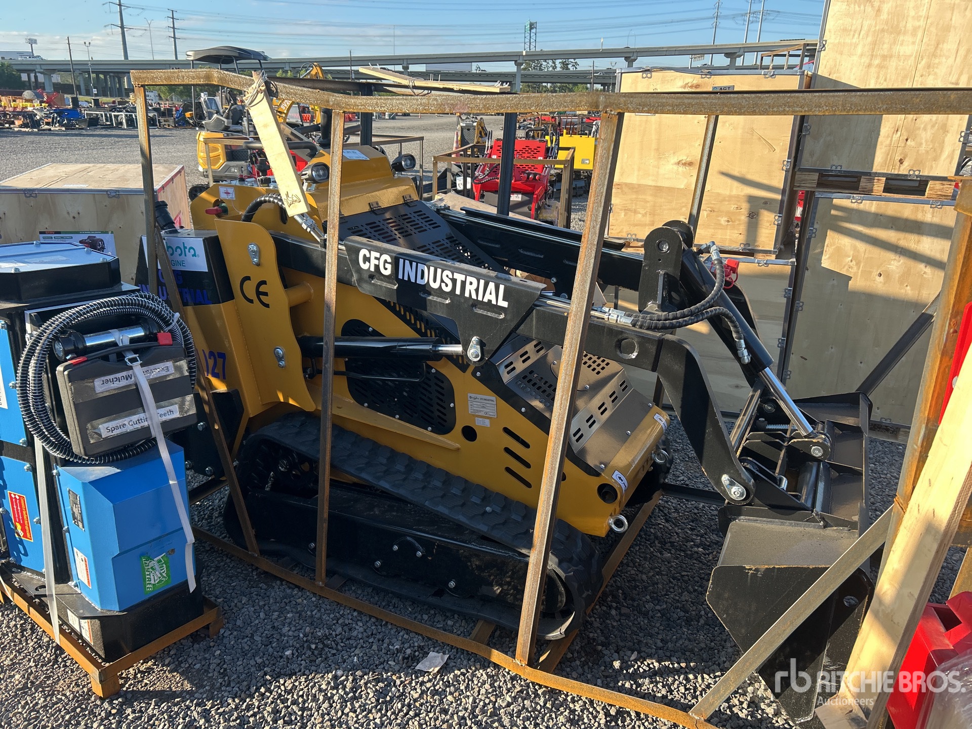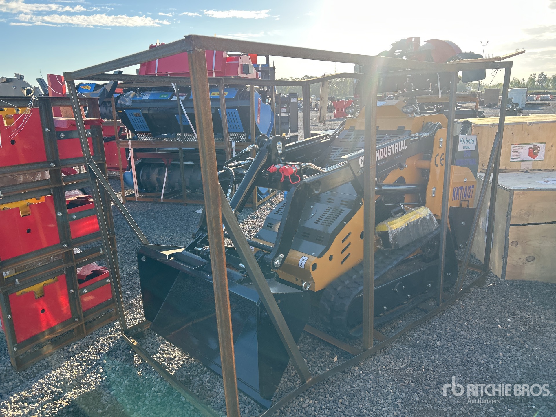 Open Operator Station, 2025 US EPA Label, 7 in Track Belts, Manual Coupler, 44 in Bucket, Item is new/unused.