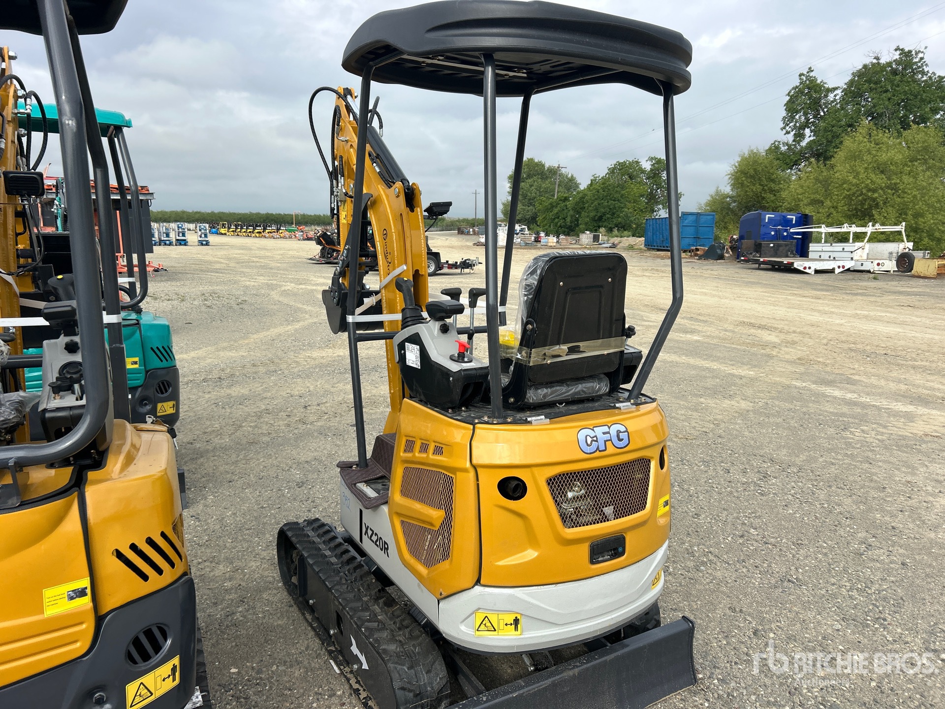 2025 US EPA Label, 2 ft 7 in Stick, Backfill Blade, 7 in Rubber Tracks, Manual Quick Coupler, 16 in Digging Bucket, Hydraulic Thumb
