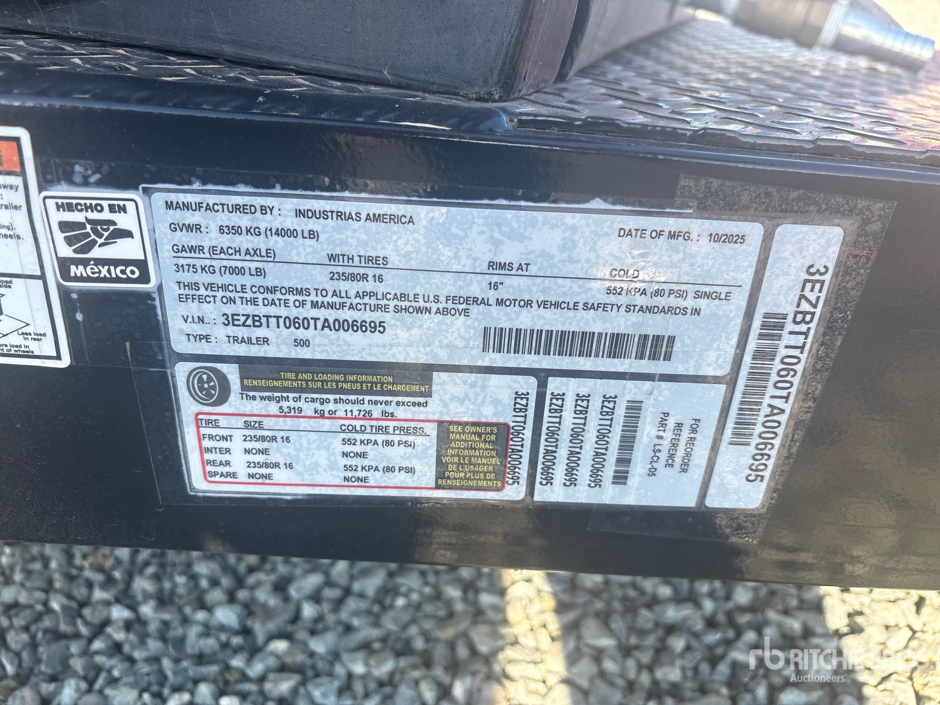 Ball Hitch, Spring Suspension, Electric Brakes, 500 gal Diesel Tank, 235/80R16 Tires, 14000 lb GVWR