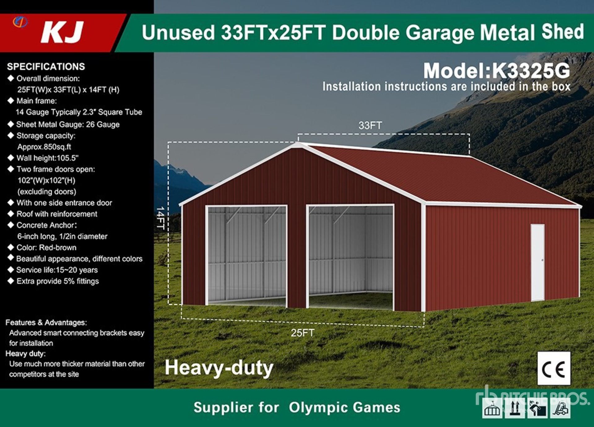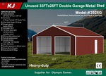 2026 KJ K3325G 25 ft x 33 ft Double Garage Metal Storage Building (Unused)