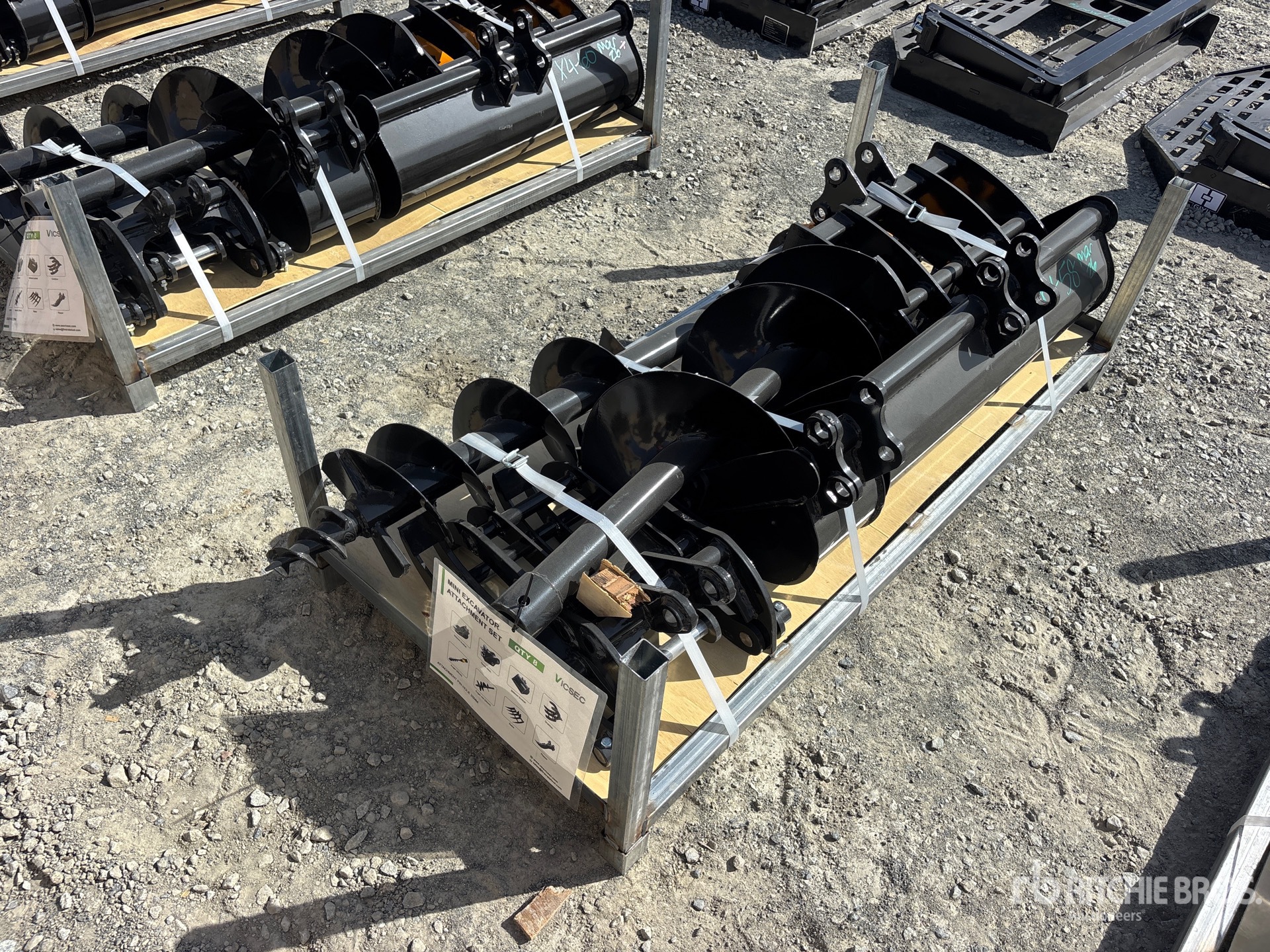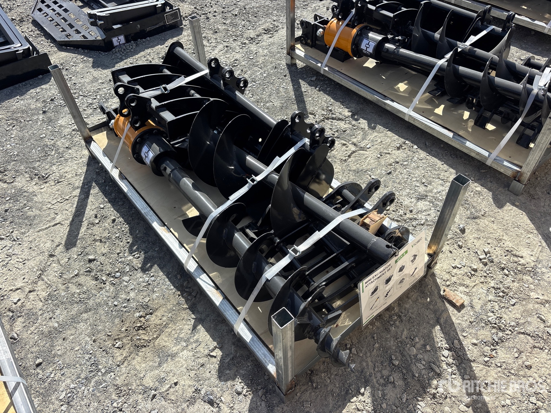 (1) Rake, (1) Ripper, (1) Grapple, (1) Auger w/ 12 in & 16 in Auger Bits, (1) 8 in Narrow Bucket, (1) 24 in Bucket, (1) 32 in Bucket