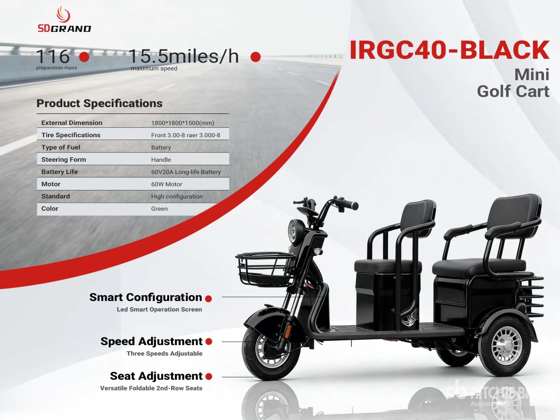 2026 SDGRAND IRGC40-BLACK 3 TT E-Trike Mini Scooter (Unused)