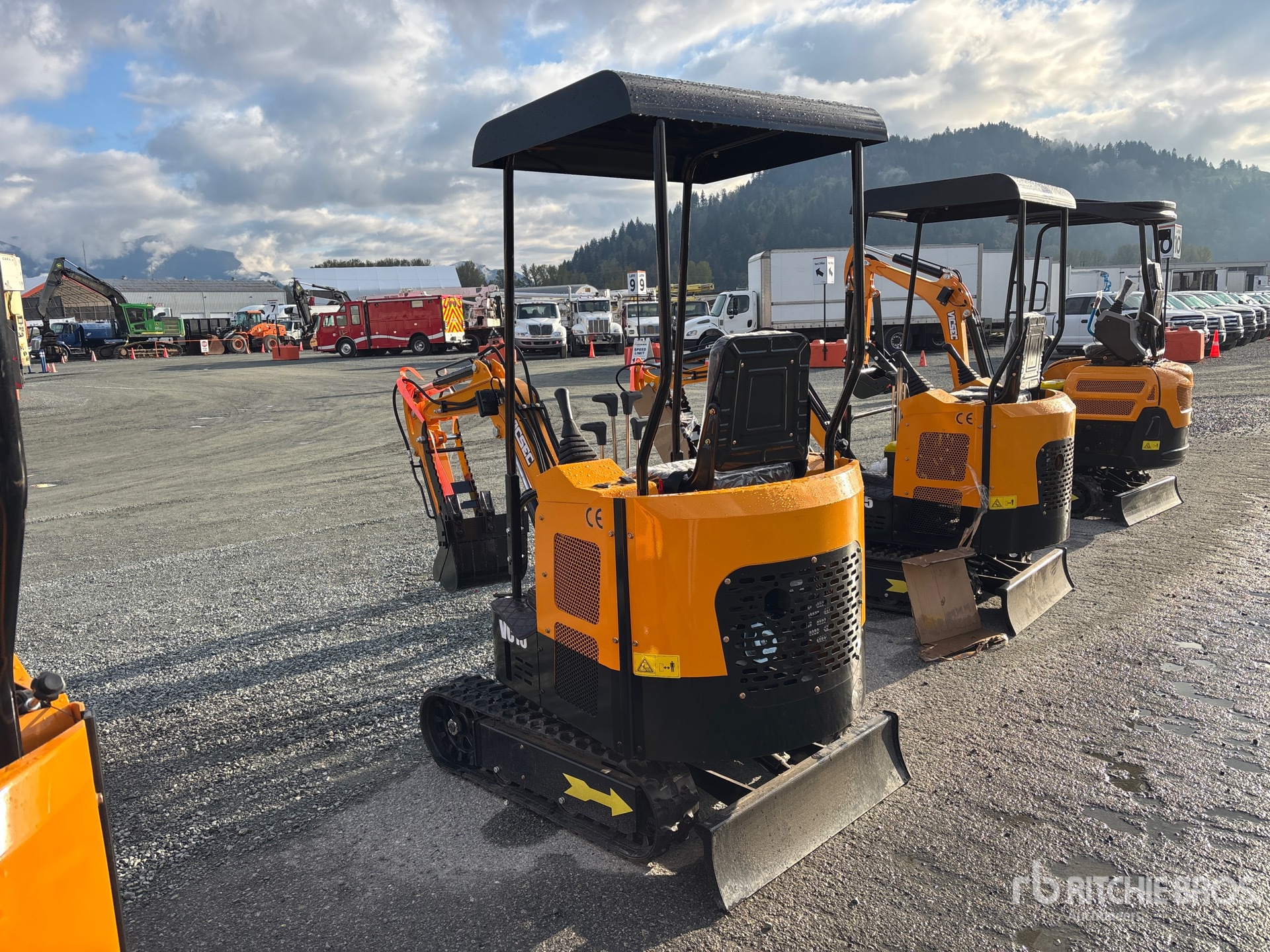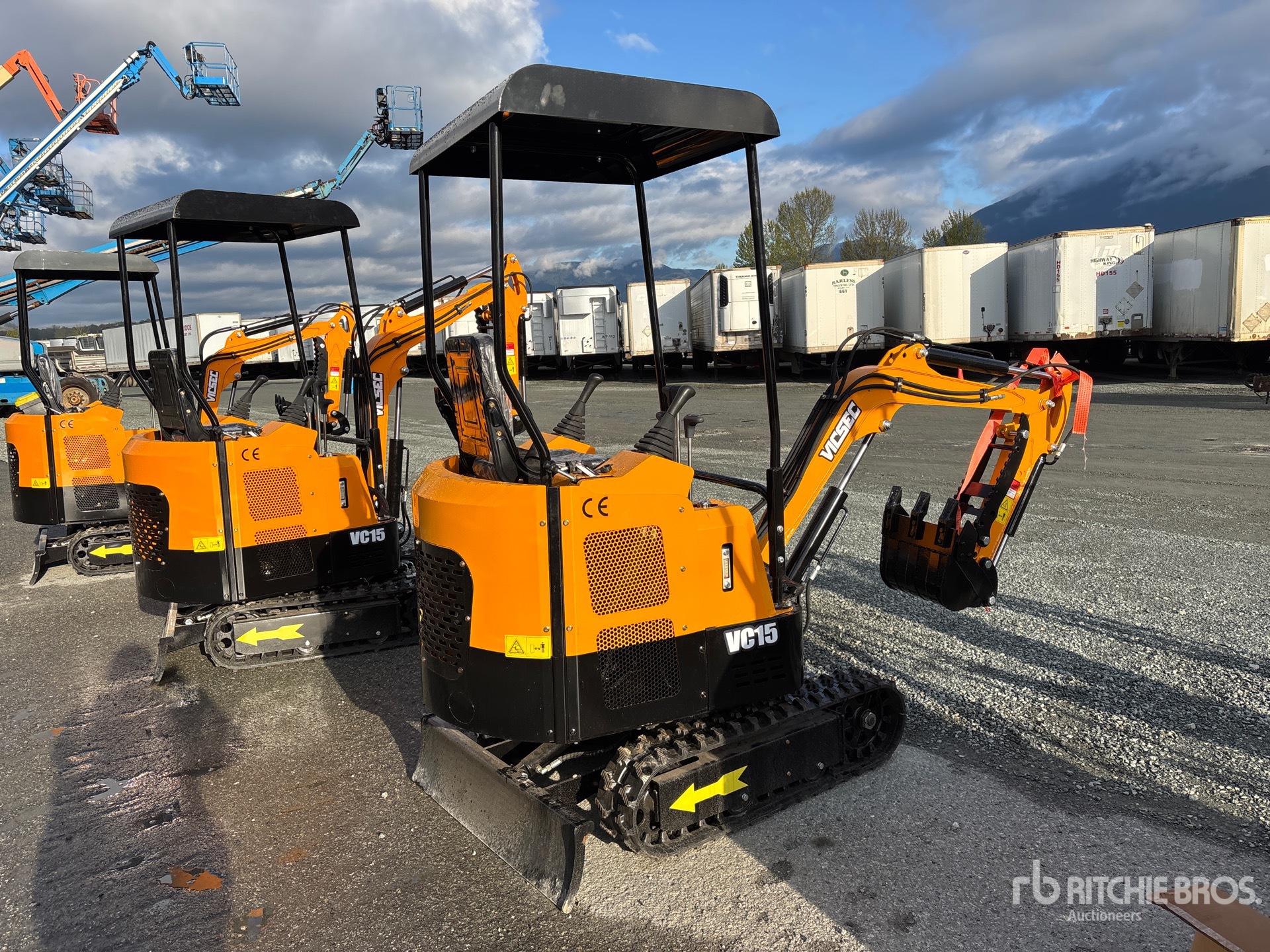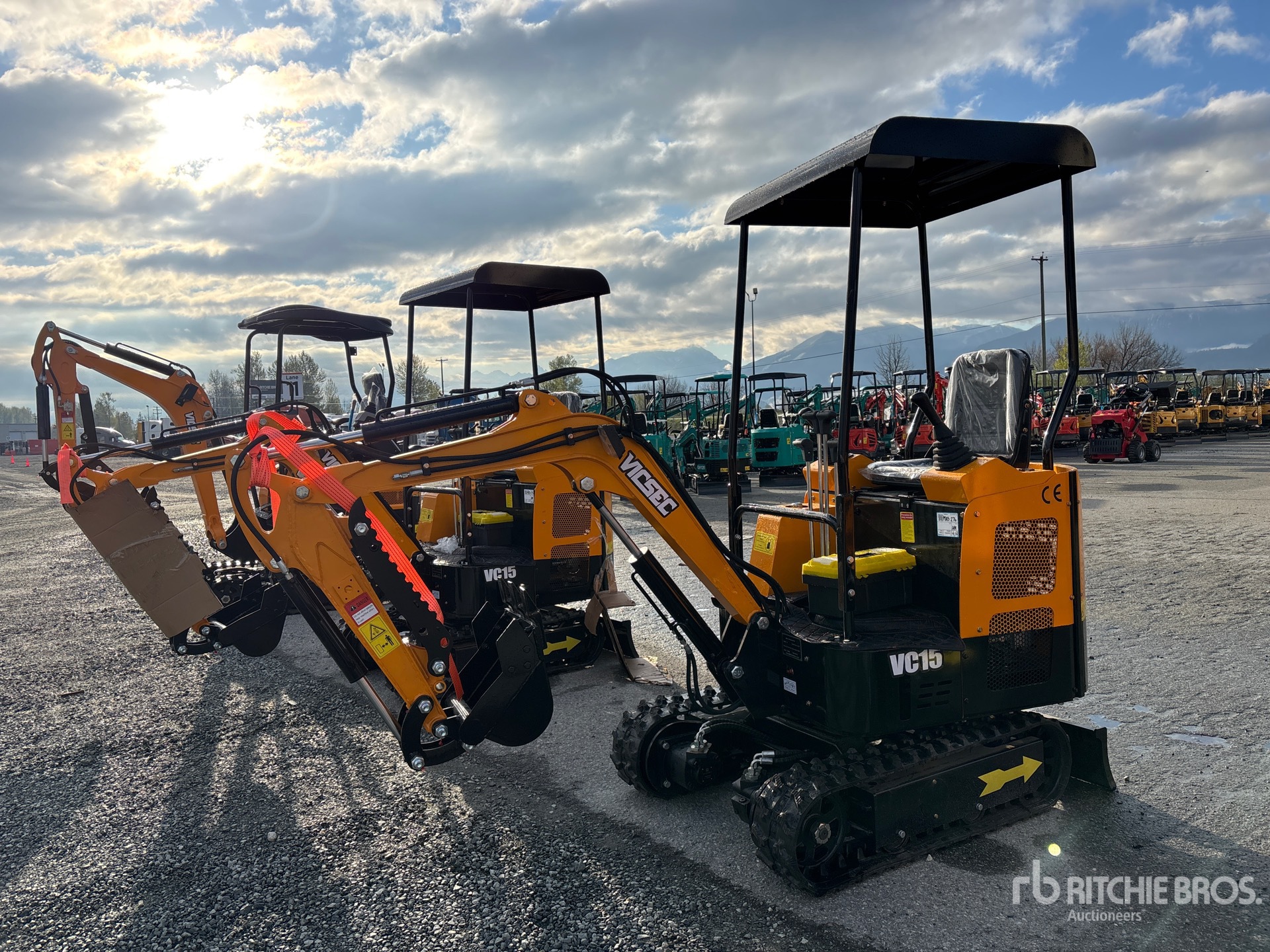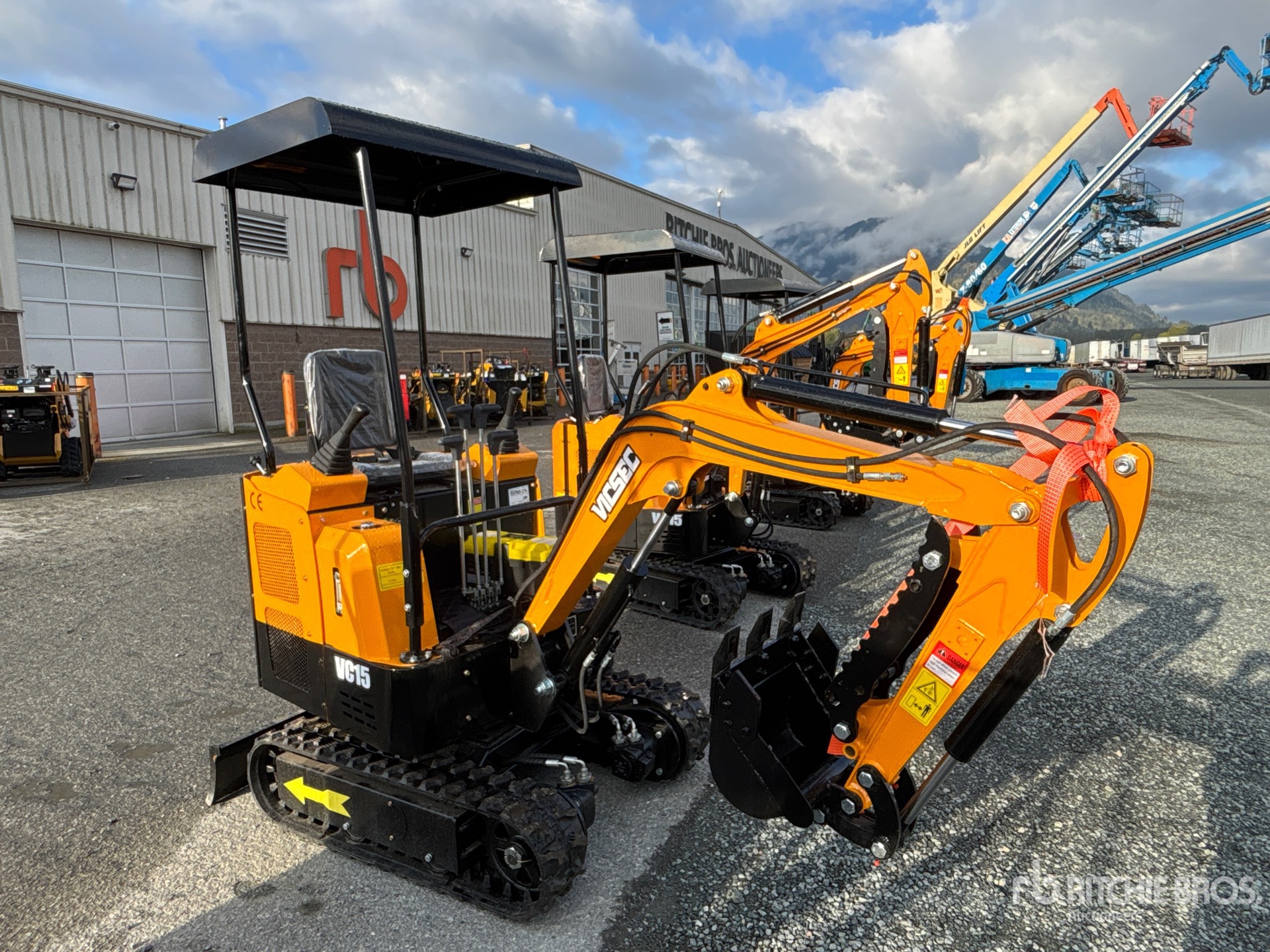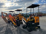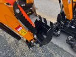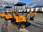 2025 US EPA Label, 3 ft 2 in Stick, Auxiliary Hydraulic Plumbing, Backfill Blade, 7 in Rubber Tracks, 16 in Digging Bucket, Manual Thumb, Product images displayed are stock photos. Item is new/unused.
