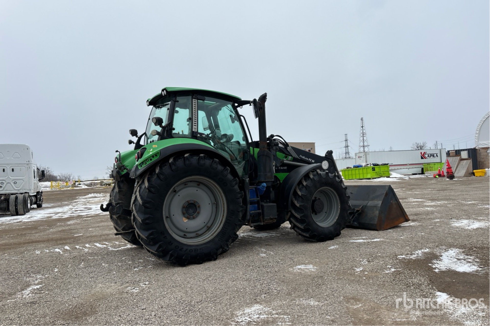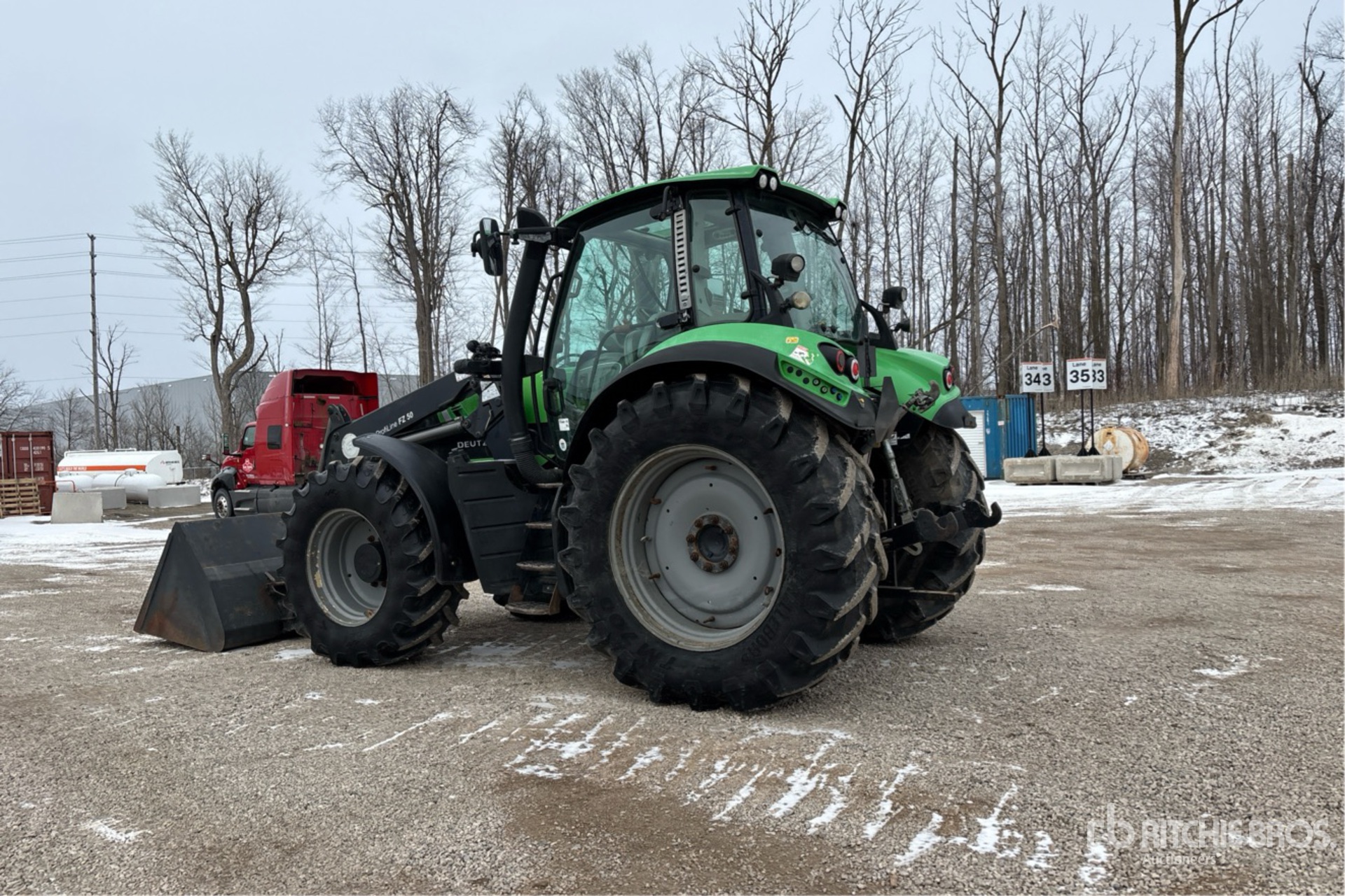 Enclosed Cab, Air Conditioner, Air Ride Seat, Differential Lock, Left Hand Reverser, Loader w/Joystick, 86 in Bucket, Exterior 3-Point Hitch Controls, 540/1000 PTO, 3-Point Hitch, 480/70R30 Front Tires, 580/70R42 Rear Tires