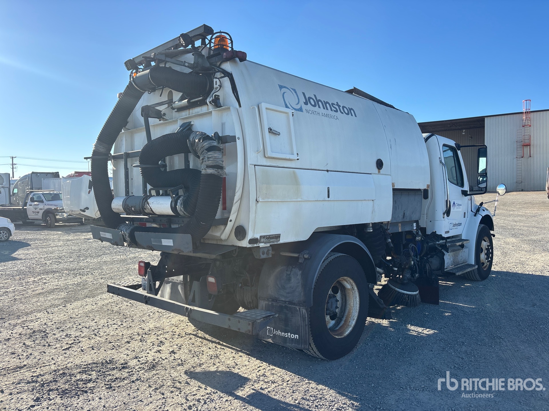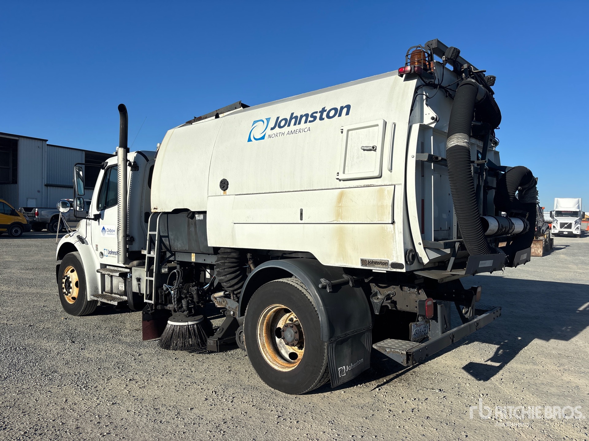 Cummins ISB 6 Cylinder 6.7 L Diesel 200 hp Engine, 2011 US EPA Label, Requires Diesel Exhaust Fluid, 1678 Engine hrs, Allison 2500 Automatic Transmission, 12000 lb Front Axle, 20000 lb Rears, Spicer 21065T Drive Axles, 6.17:1 Axle Ratio, 32000 lb GVWR, 11R22.5 Front Tires, 11R22.5 Rear Tires, Spring Suspension, 178 in Wheelbase, John Deere 115 hp Auxiliary Engine, Regenerative Air, Dual Controls, Front Spray Bar, Gutter Brooms, Water System