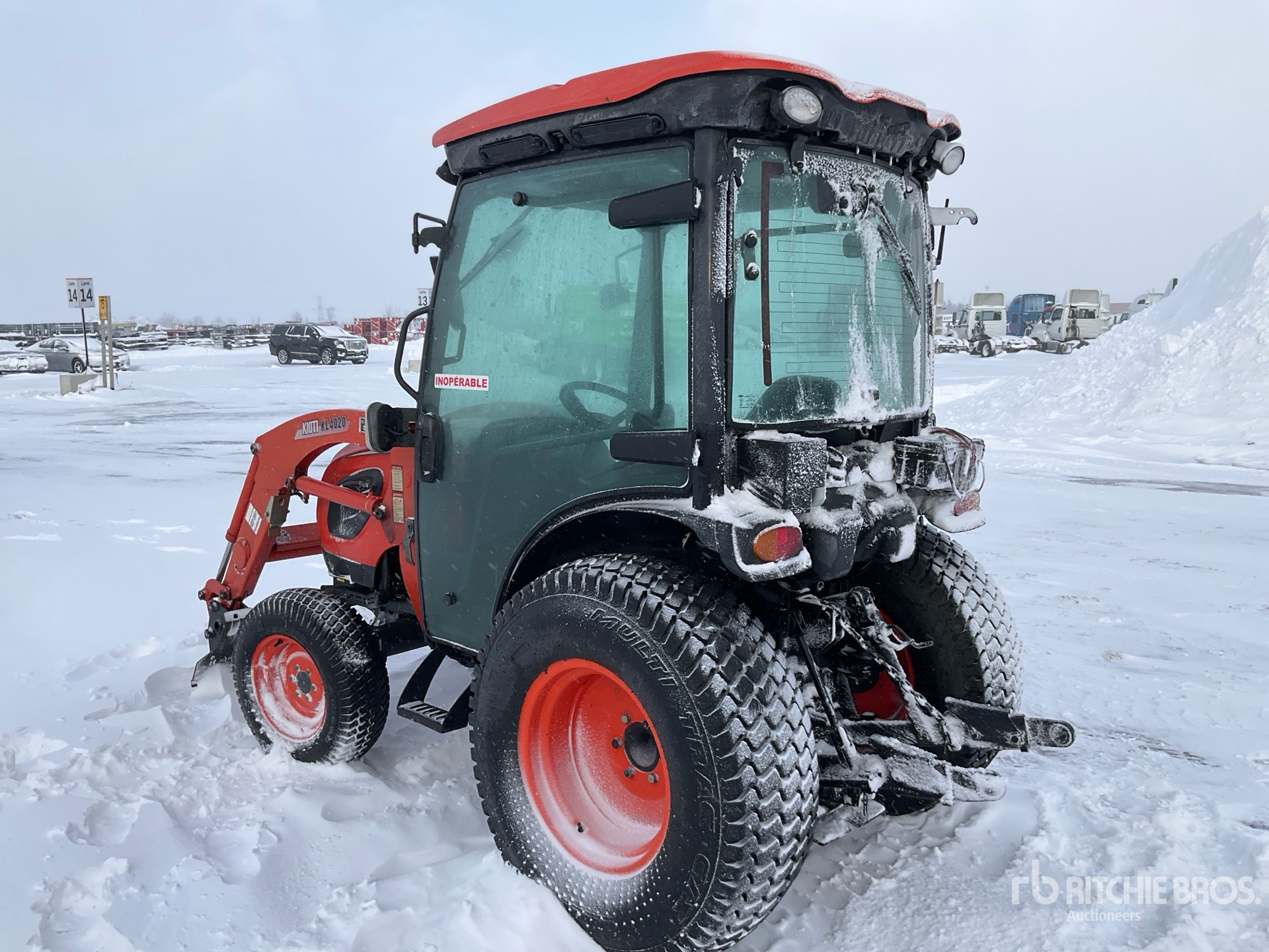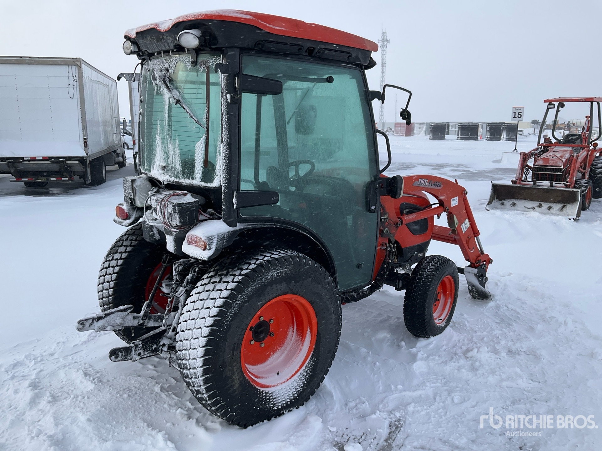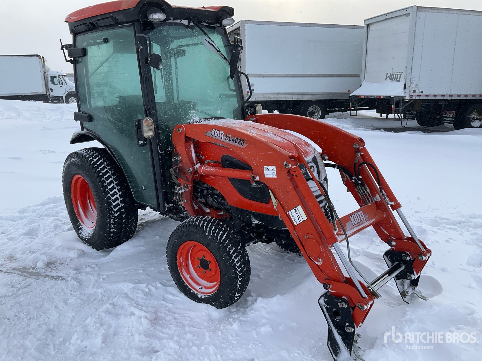 Enclosed Cab, Hydrostatic Drive, Kioti KL4020 Loader w/Joystick, Quick Coupler, Mid-Mount Remotes, 2 Rear Remotes, 540 PTO, 3-Point Hitch, 28x8.50-15 Front Tires, 41x14.00-20 Rear Tires