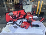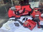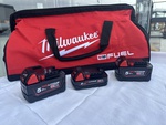 N.1 GREASE GUN, N.1 TORQUE IMPACT, N.1 ANGLE GRINDER, N.1 BATTERY 5.0AH, N.1 BATTERY 2.0 AH, N.1 BATTERY CHARGER AND 1 MILWUAKEE BAG