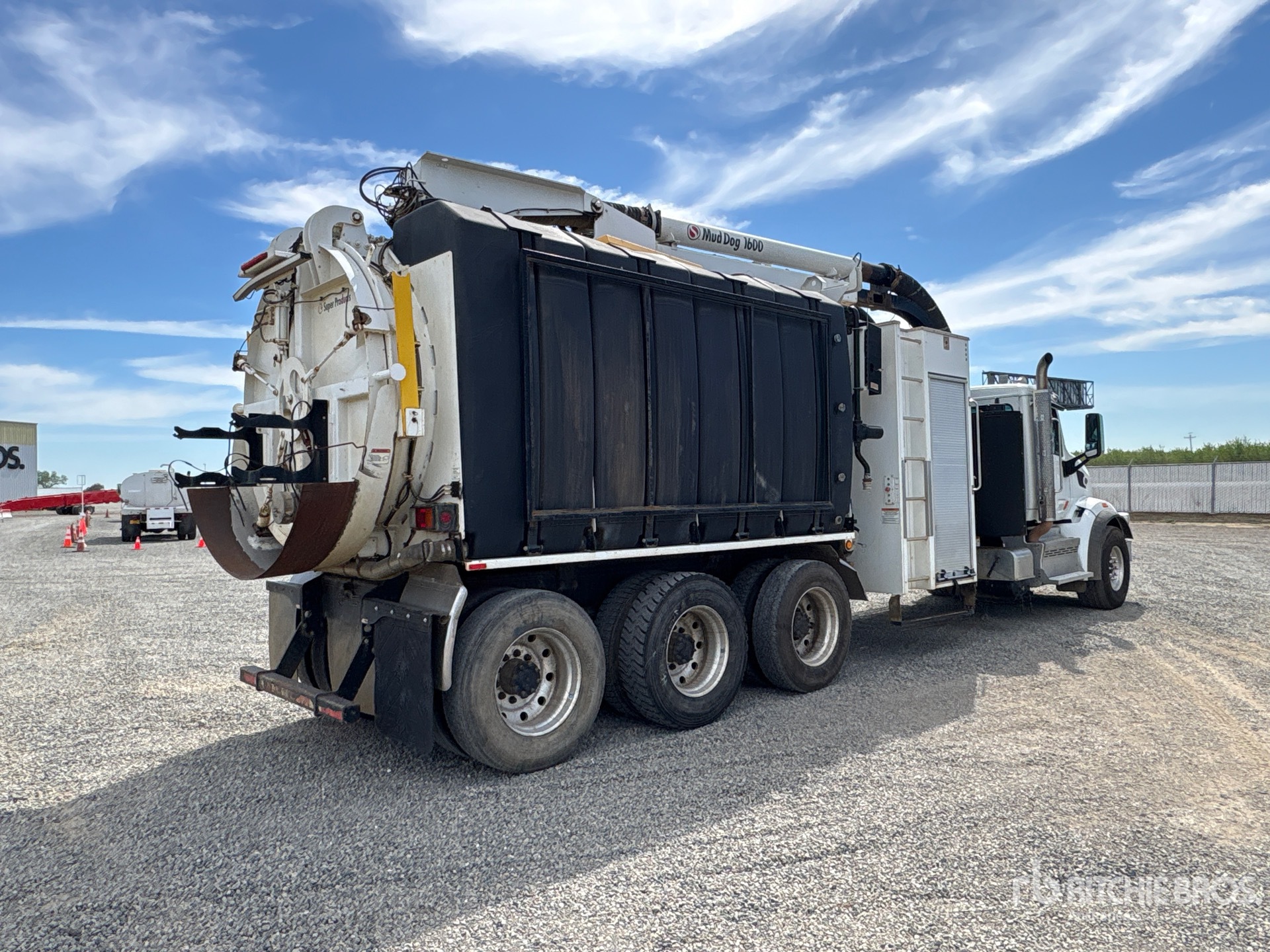 Cummins ISX12 6 Cylinder 15 L Diesel Engine, Requires Diesel Exhaust Fluid, Engine Brake, Eaton Fuller 18-Speed Manual Transmission, Double Differential Locks, 20000 lb Front Axle, 44000 lb Rears, 86000 lb GVWR, Aluminum Outer Wheels, 425/65R22.5 Front Tires, 11R24.5 Rear Tires, Air Ride Suspension, 312 in Wheelbase, Steel Debris Tank, Fresh Water Tank, Hydraulic Lift Tailgate, Hydraulic Tailgate Locks, 20 ft Boom, 8 in Suction Hose, Blower, Remote Control w/Cord