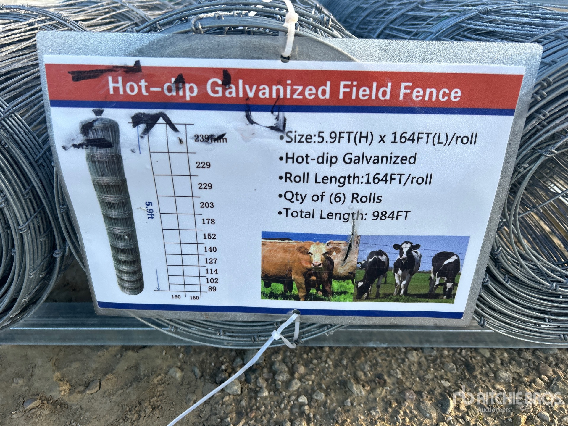 Quantity of (6) 5 ft 9 in x 164 ft Galvanized Hot Dip Field Fencing (Unused)